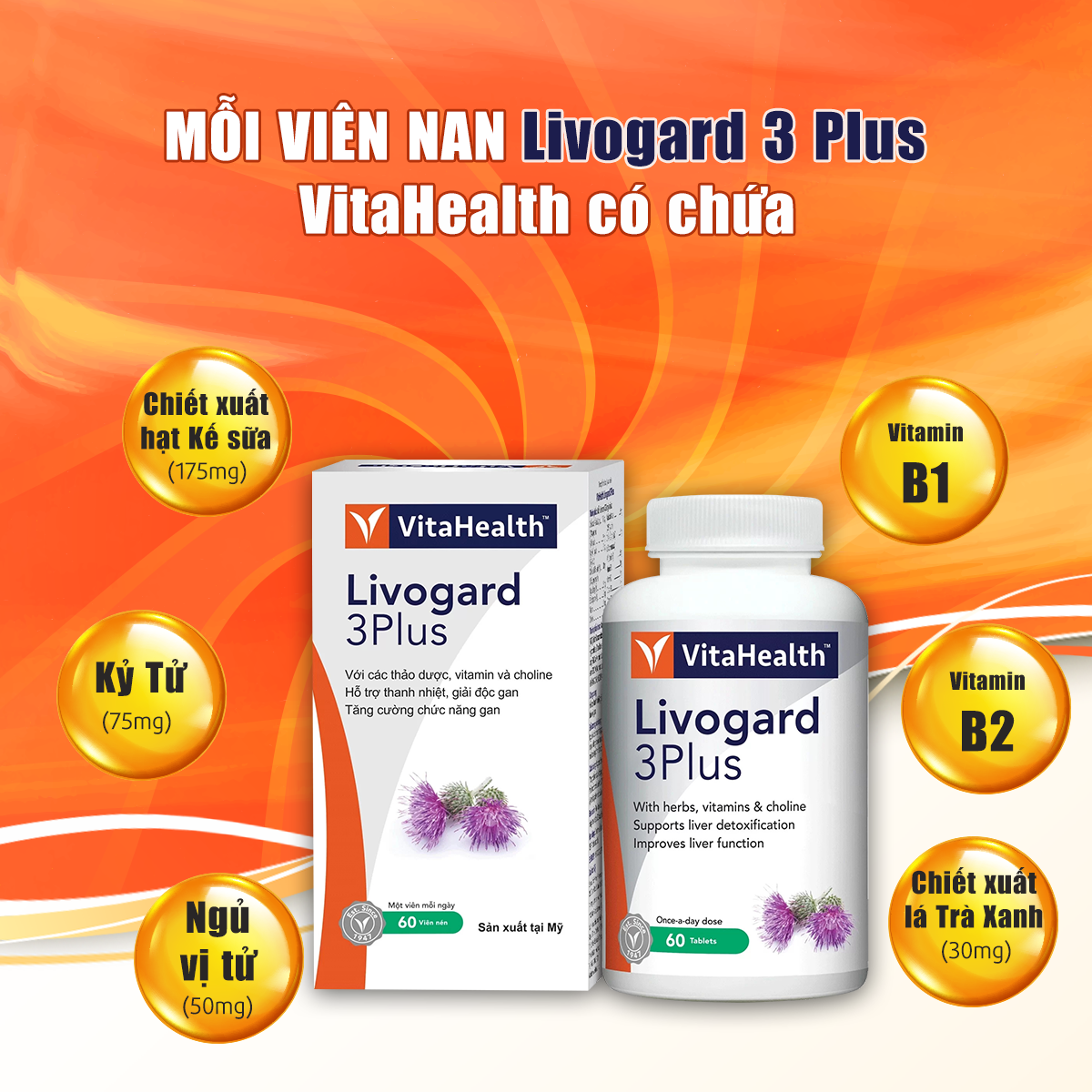 Viên Uống Bổ Gan, Thải Độc Gan, Hỗ Trợ Viêm Gan VITAHEALTH Livogard 3Plus (60 Viên) Thực phẩm bảo vệ sức khỏe VitaHealth Livogard 3Plus với thành phần chiết xuất từ loại thảo dược quý chuyên