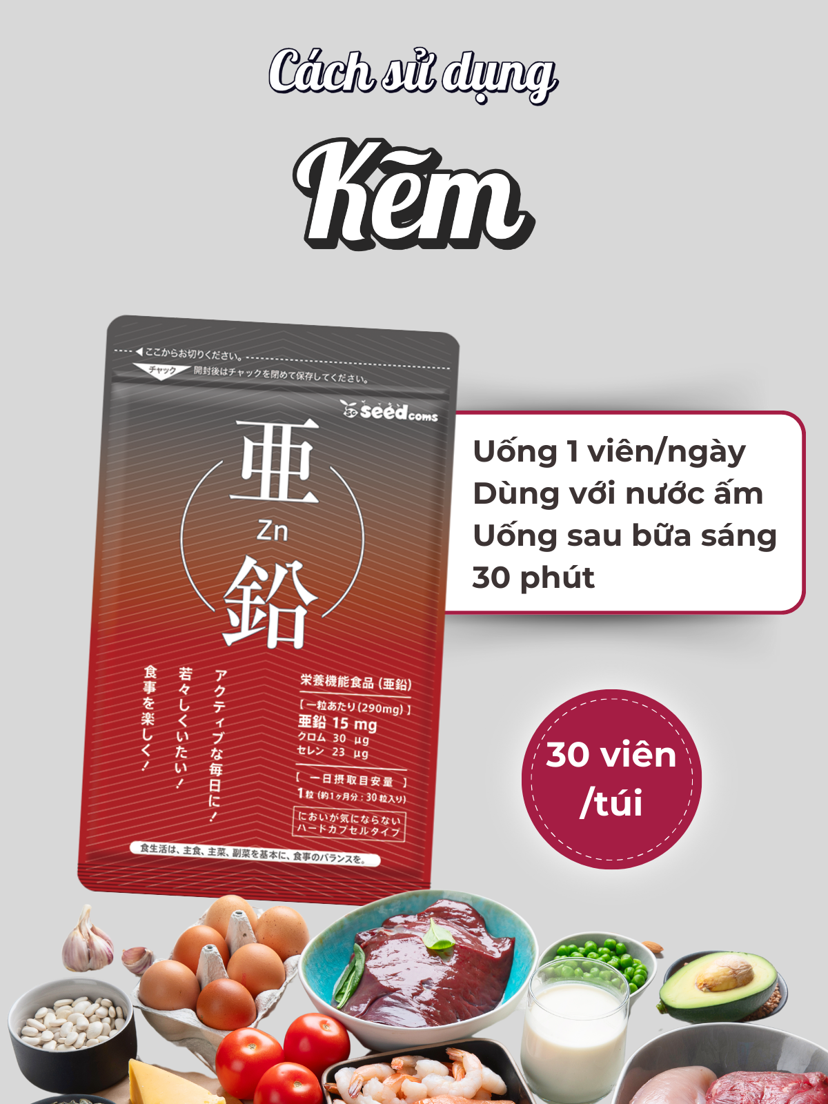 Viên uống hỗ trợ bổ sung kẽm Seedcoms Nhật Bản giúp bổ sung kẽm cho cơ thể, giúp tham gia vào quá trình chuyển hoá và phát triển cơ thể, đặc biệt là quá trình