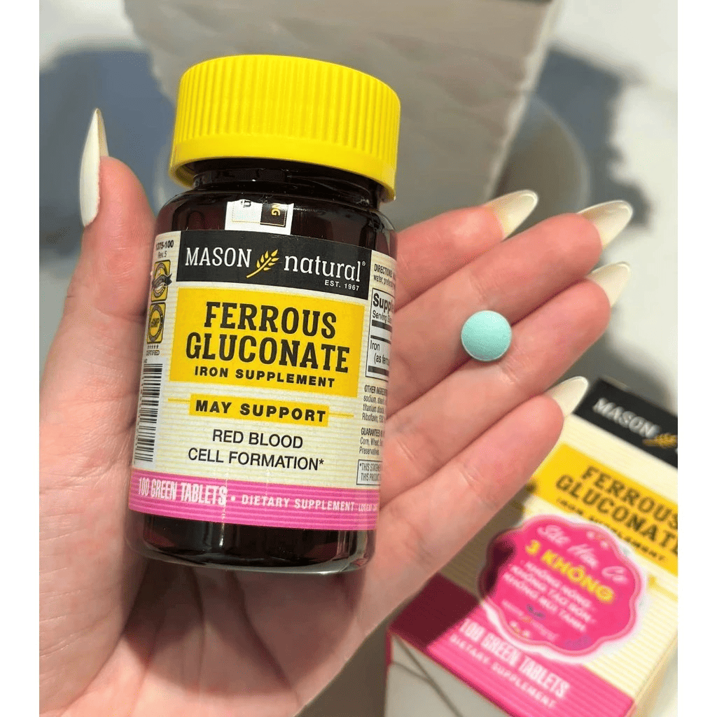 MASON FERROUS GLUCONATE - BỔ SUNG SẮT HỮU CƠ, DỄ HẤP THU - KHÔNG GÂY NẶNG BỤNG, TÁO BÓN Tạm biệt thiếu máu – Đón năng lượng mới mỗi ngày cùng Ferrous Gluconate từ Mỹ