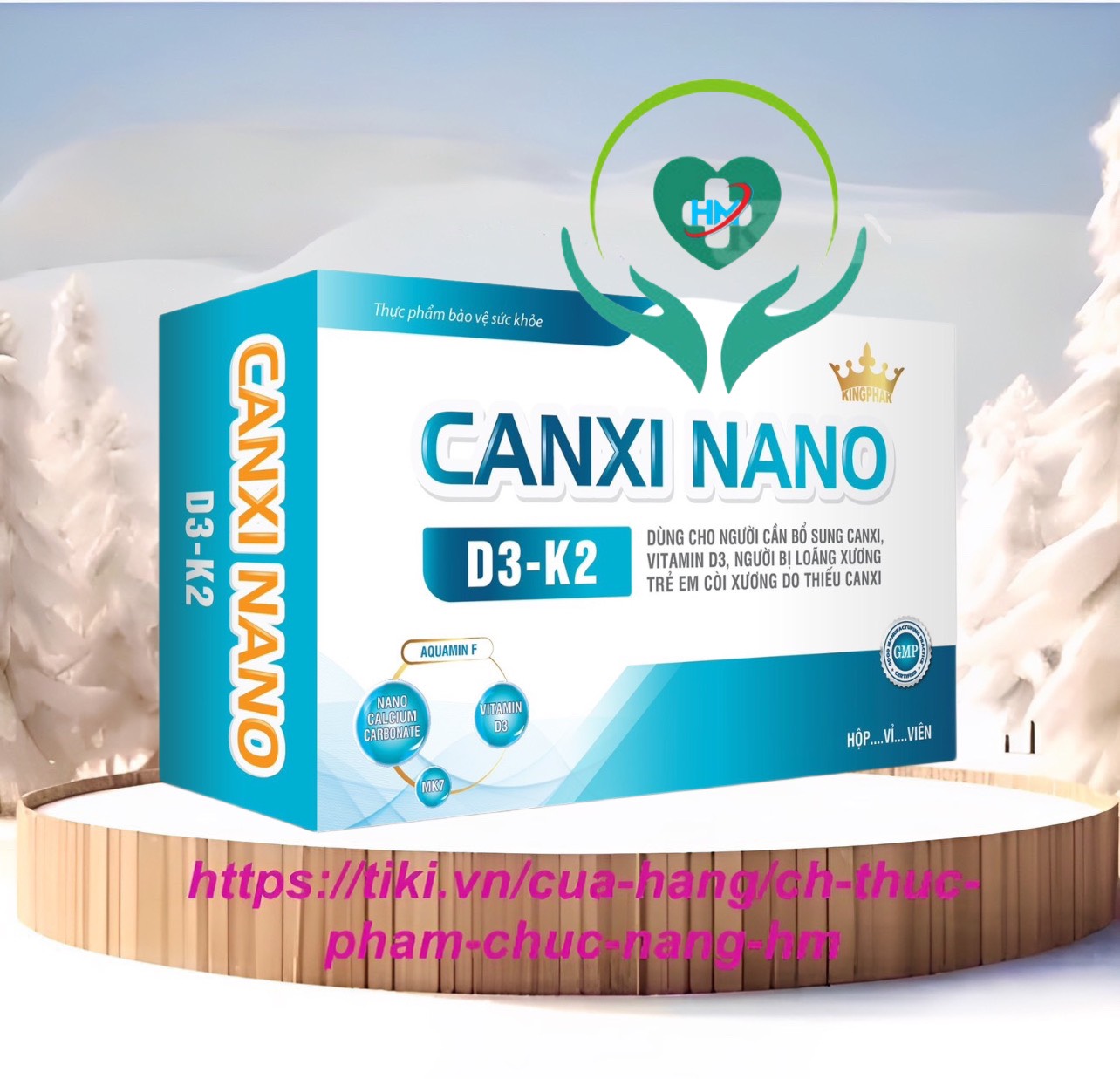 Thành phần: Aquamin F ( tảo biển đỏ) 400mg Nano calcium Carbonate 320mg Vitamin D3 400IU MK7 25mcg Công dụng: Bổ sung canxi, vitamin D3 cho cơ thể, giúp xương răng chắc khỏe, hạn chế nguy cơ còi xương ở trẻ em, và loãng xương ở người trưởng thành Đối tượng sử dụng: Trẻ từ 7 tuổi trở lên, người lớn Cảnh báo : không dùng cho người bị sỏi thận, sỏi tiết niệu Cách dùng: Trẻ từ 7-10 tuổi: 1 viên/ ngày Từ 10 tuổi trở lên: 2 viên/ ngày, ( mỗi lần 1 viên) Bảo quản: nơi khô mát, tránh ánh sáng trực tiếp Thương nhân chịu trách nhiệm: Công ty CP Kingphar Việt Nam