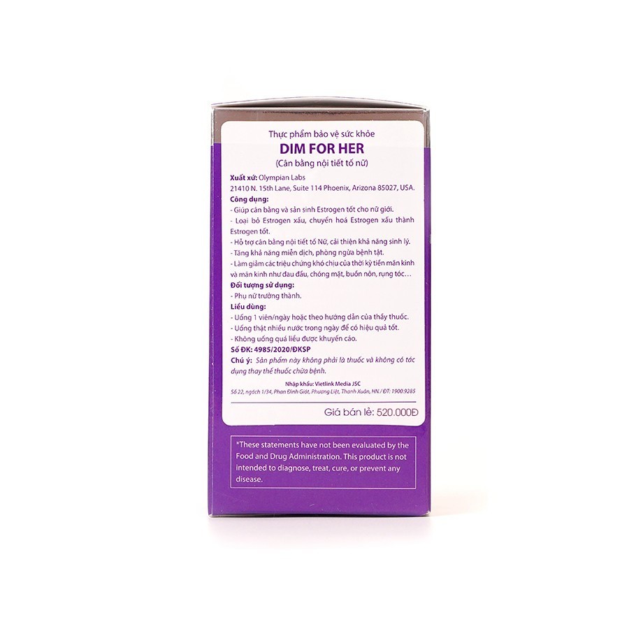 Viên uống hỗ trợ cân bằng nội tiết tố nữ Dim For Her Olympian Labs Mỹ 30 viên THÔNG TIN SẢN PHẨM DỊM FOR HER: