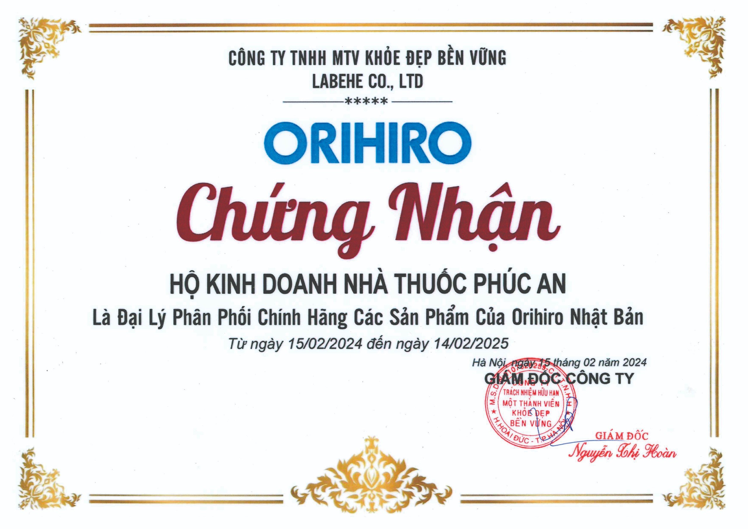 1. Thông tin chi tiết sản phẩm: - Hãng sản xuất: Orihiro. - Xuất xứ: Nhật Bản. - Quy cách: Dạng viên, lọ 300 viên, 75g. - Hạn sử dụng: 24 tháng kể từ ngày