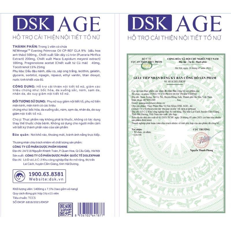 ✨Viên uống nội tiết tố nữ DSK AGE giúp cân bằng nội tiết tố, giúp giảm nám, sạm da, nhăn da giúp da săn chắc - Hộp 3 Lọ x 15 Viên