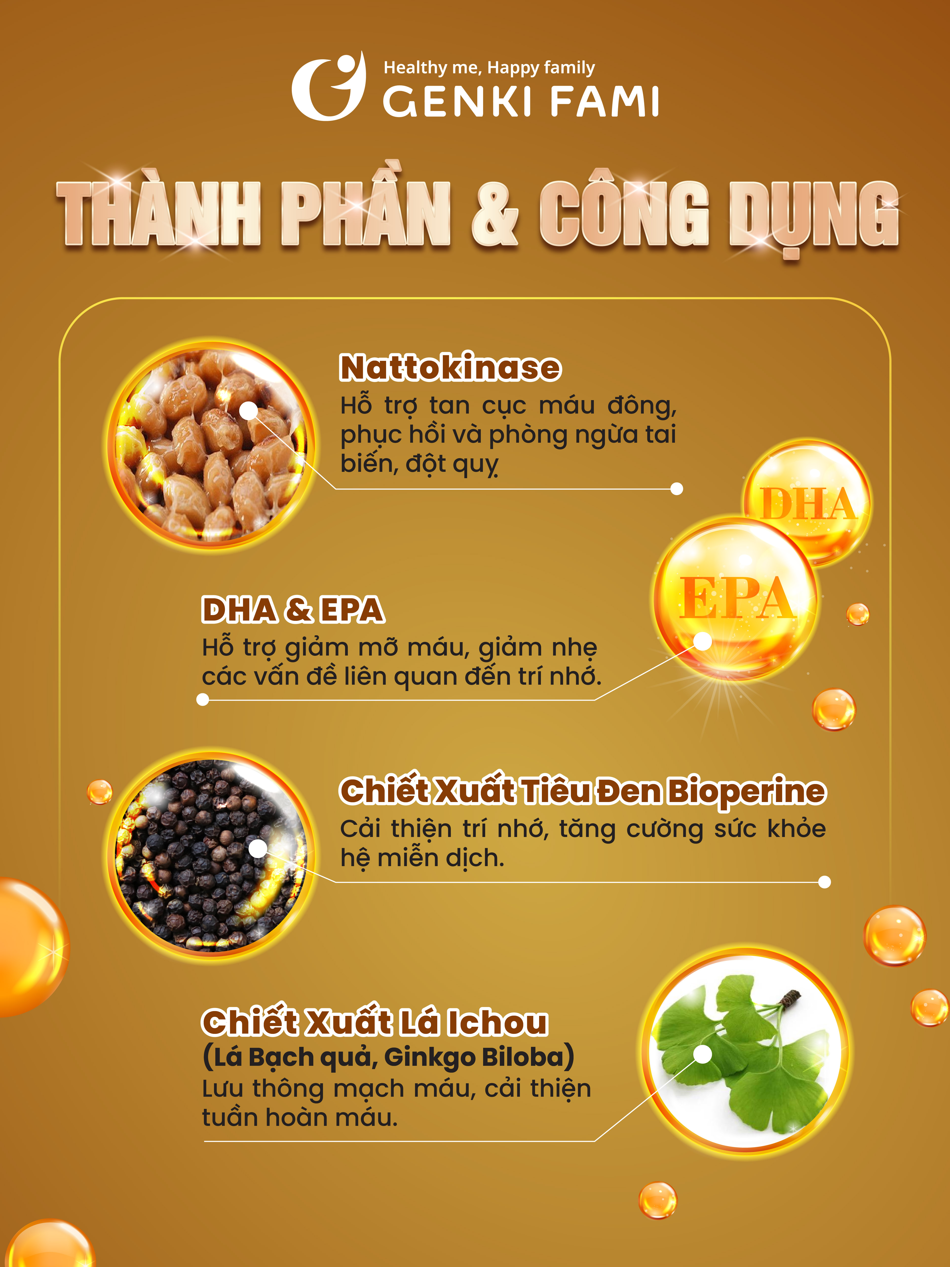 - DHA & EPA: Hỗ trợ giảm mỡ máu. Cải thiện trí nhớ, hỗ trợ giảm nhẹ các vấn đề liên quan đến trí nhớ. CÔNG DỤNG CỦA PHÒNG NGỪA ĐỘT QUỴ NATTO ICHOU: