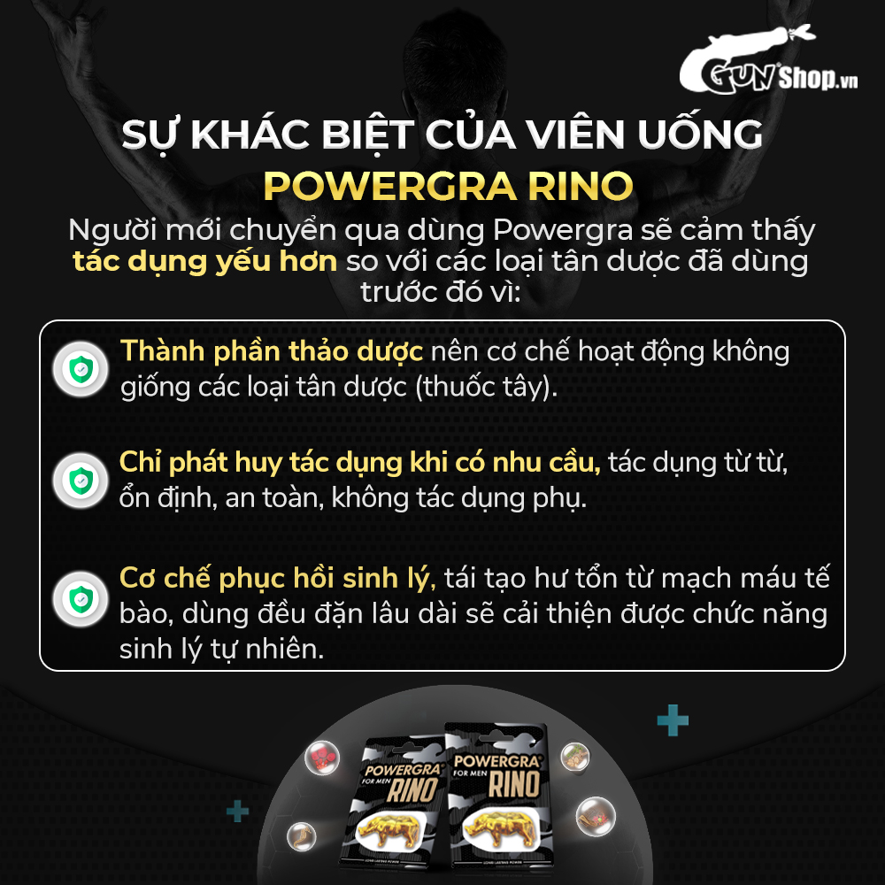 ✪ Thông tin: Powergra For Men Rino được tổng hợp từ các loại thảo dược tự nhiên cao cấp và quý hiếm nên cực kỳ an toàn và tốt cho sức khỏe của người sử