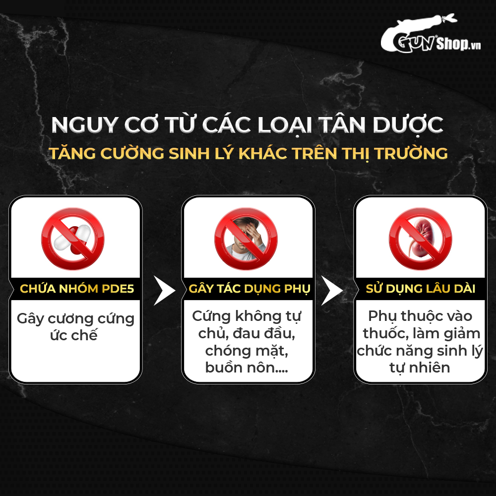 ✪ Thành phần: Eucommia ulmoides; Hippocampus; Morinda Officinalis Stow, Eurycoma longifolia, Herba Epimedii, Clemmy Chinensis Tortoise, Balanophora. Talc, Magnesium Stearat, Nipazin, Nipazol, Polyvinyl Pyrrolidon, Lactose, Ethanol 96%.