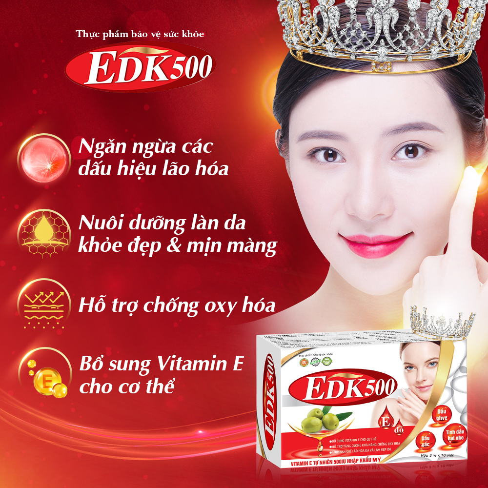 Viên Uống Bổ Sung Vitamin E EDK500 - Giúp Tăng Cường Chống Oxy Hóa, Trẻ Hóa Và Làm Đẹp Da