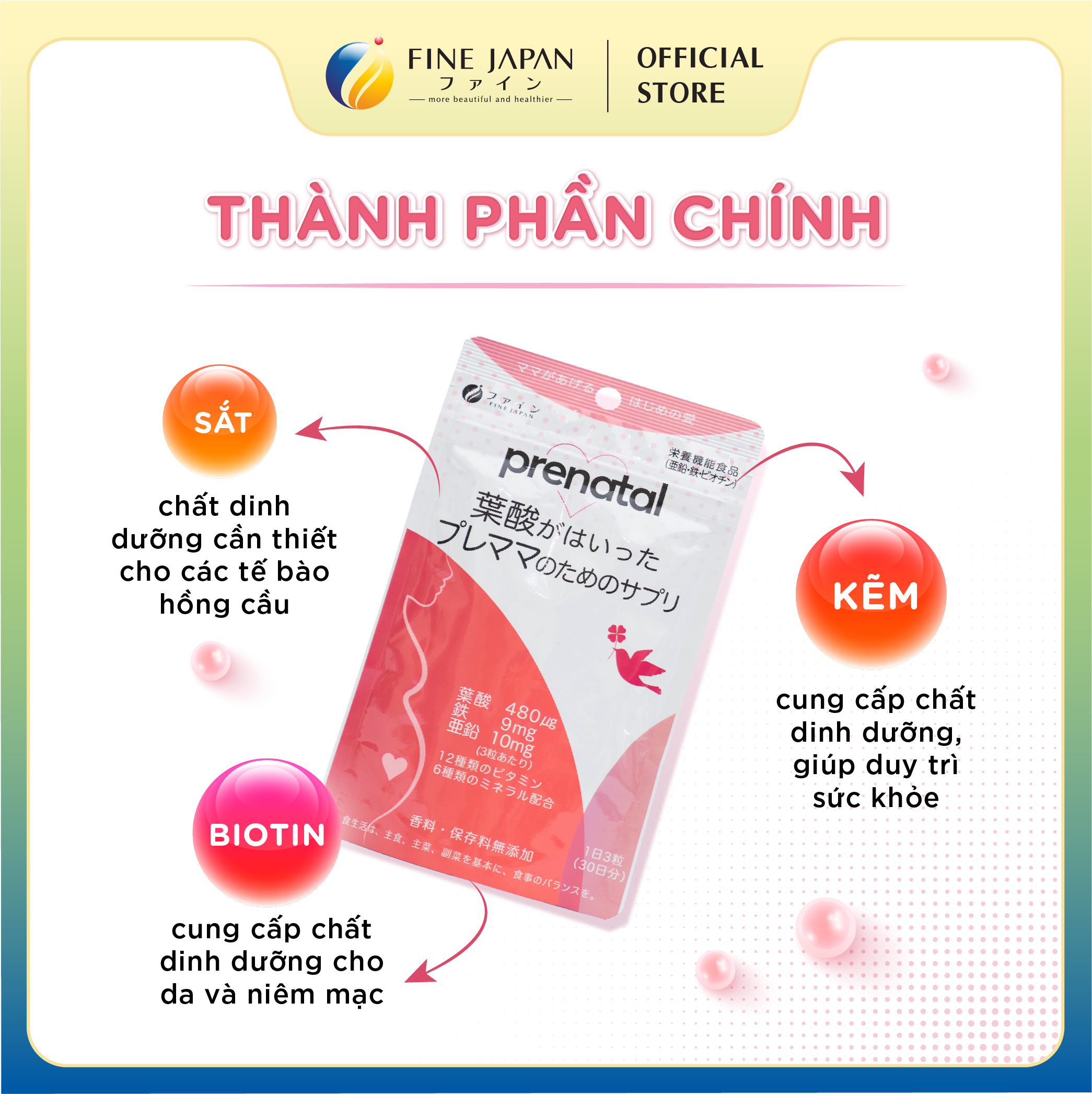 ► Vitamin tổng hợp cho bà bầu Prenatal FINE JAPAN bổ sung 12 Vitamin & 6 khoáng chất gói 90 Viên (30 ngày)