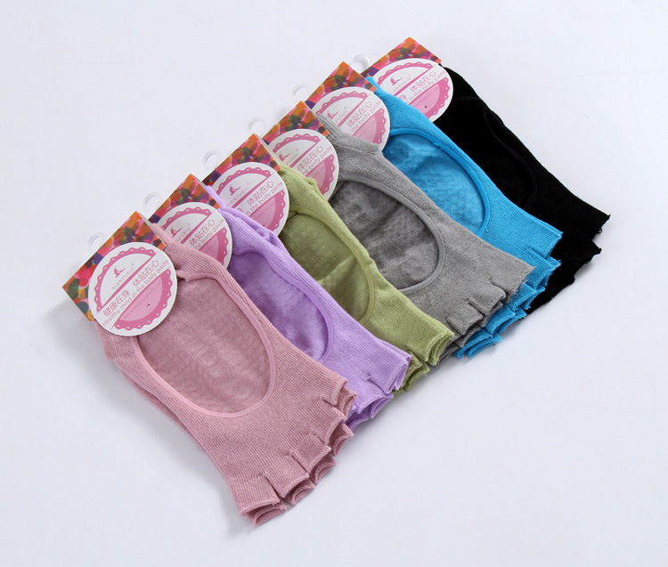 - Vớ tập yoga thiết kế dạng 5 ngón rời, đính các hạt nhựa dẻo dưới lòng bàn chân, vừa có tác dụng chống trượt, vừa giúp massage bàn chân thư giãn khi tập.