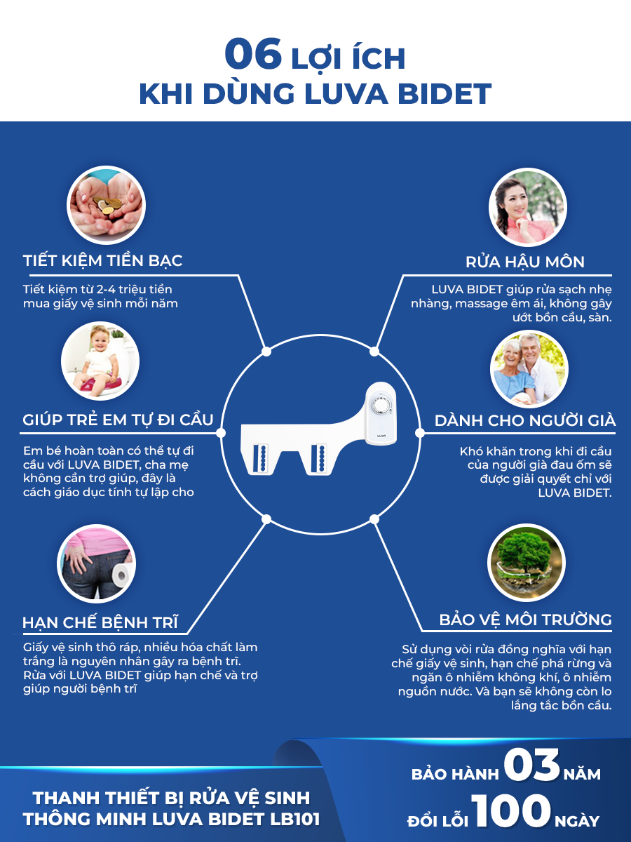Vòi xịt rửa vệ sinh thông minh LUVA Bidet - bảo hành 3 năm