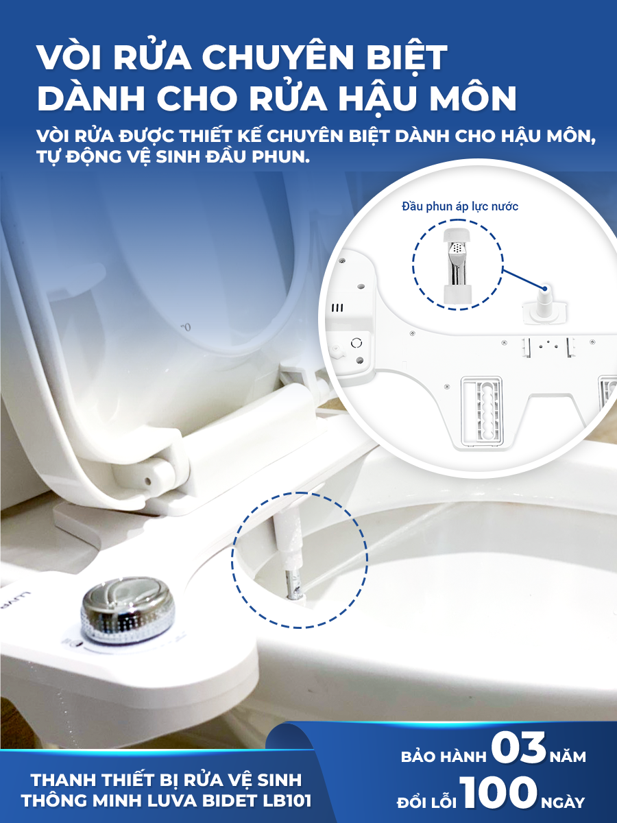 Mua tại TiktokVòi xịt vệ sinh thông minh LUVA BIDET LB101/LB201 xuất Hàn Quốc, BH 3 nămXuất xứ : Việt Nam ( Công nghệ 100% Hàn Quốc ) Thương hiệu : LUVA ️ Mã sản phẩm: LB101 - 1 vòi (rửa hậu môn) ️ Mã sản phẩm: LB201 - 2 vòi (2 chế độ rửa): rửa hậu môn, rửa phụ nữ => phù hợp gia đình
