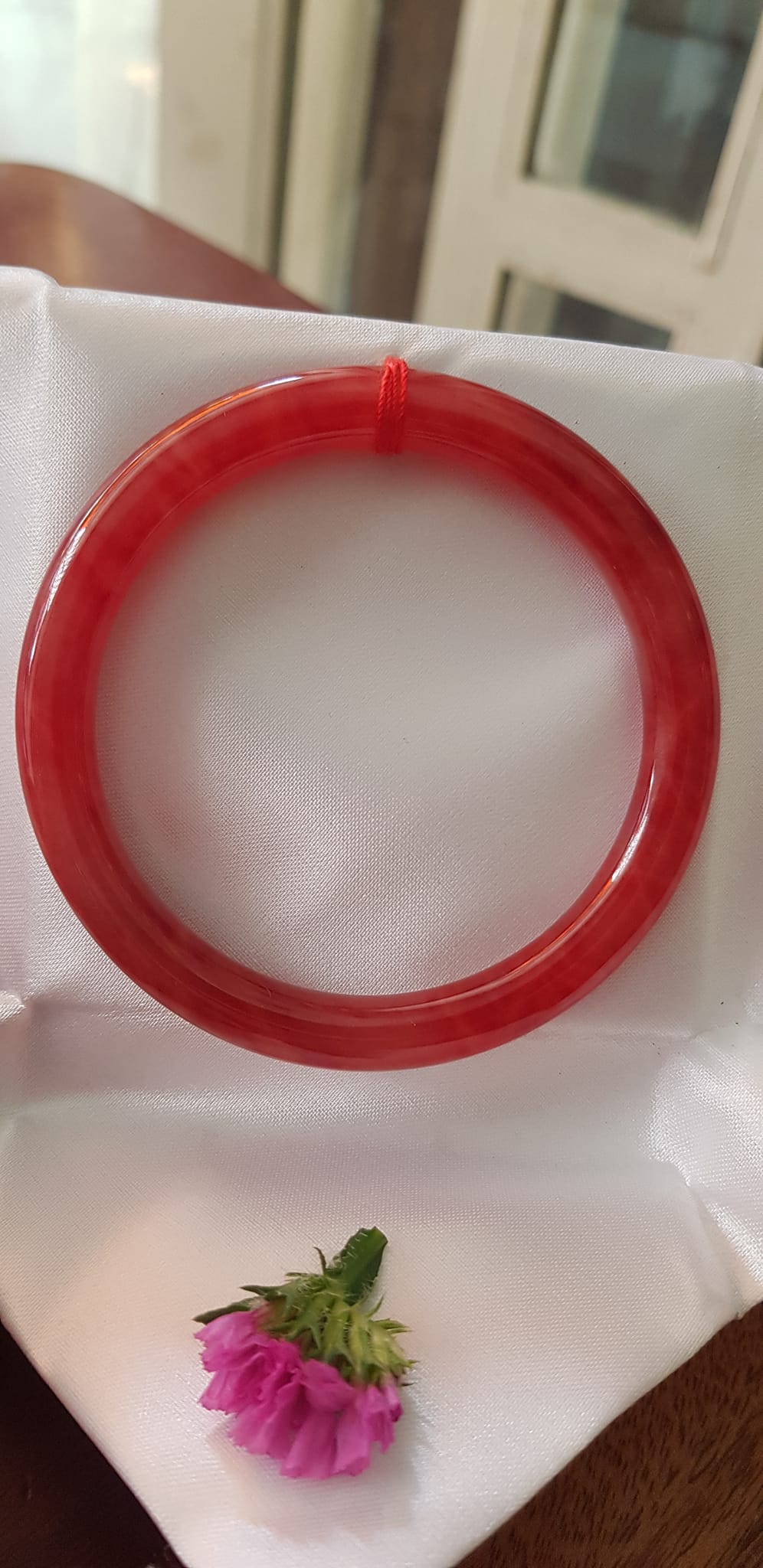 ✨Vòng Cẩm Thạch Đỏ Bông 59mm x cọng 8mm màu đỏ bông tươi sáng bóng thiệt đẹp là màu chiến thắng chuẩn hợp nữ mạng hỏa mạng thổ 57kg - 70kg đeo đẹp tay may mắn tốt sức khỏe công việc rực rỡ tài lộc ạ