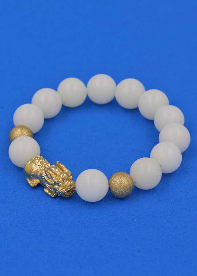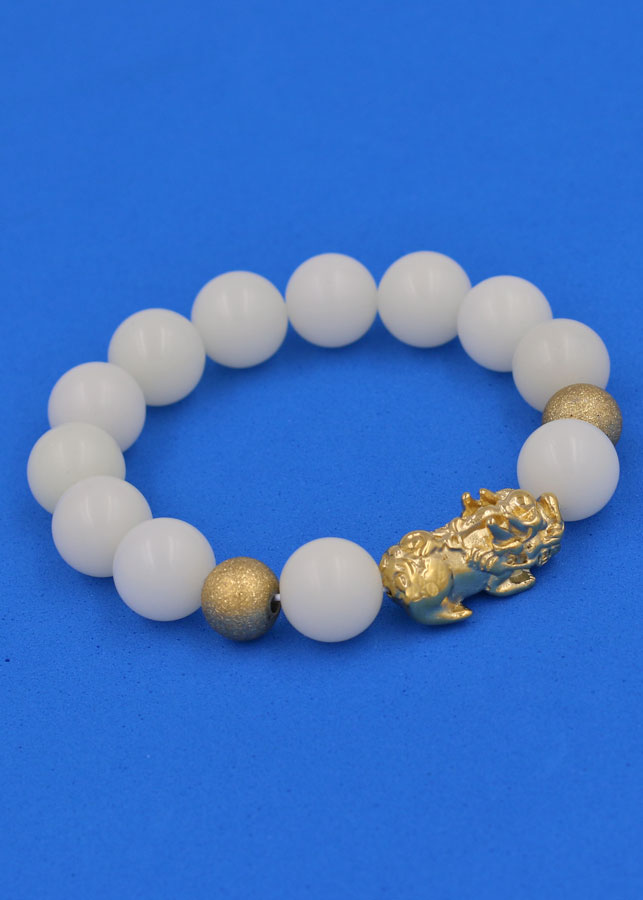 ✨Vòng đeo tay hạt Bồ Đề Trắng 12 ly - cẩn Tỳ Hưu Phong Thủy inox vàng VBDTTHHBV12