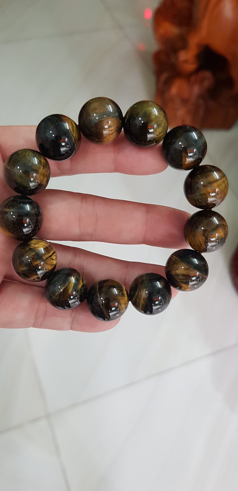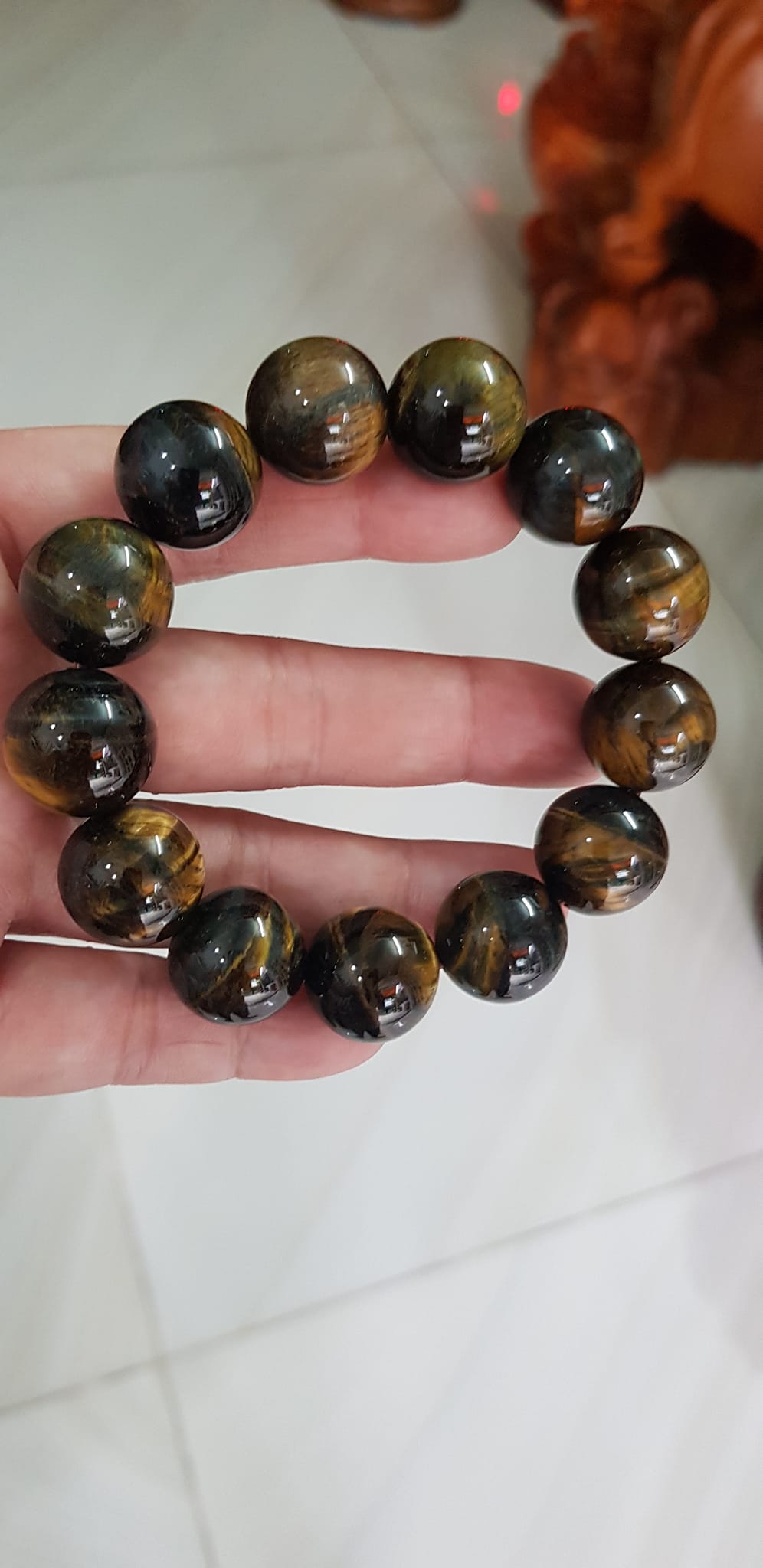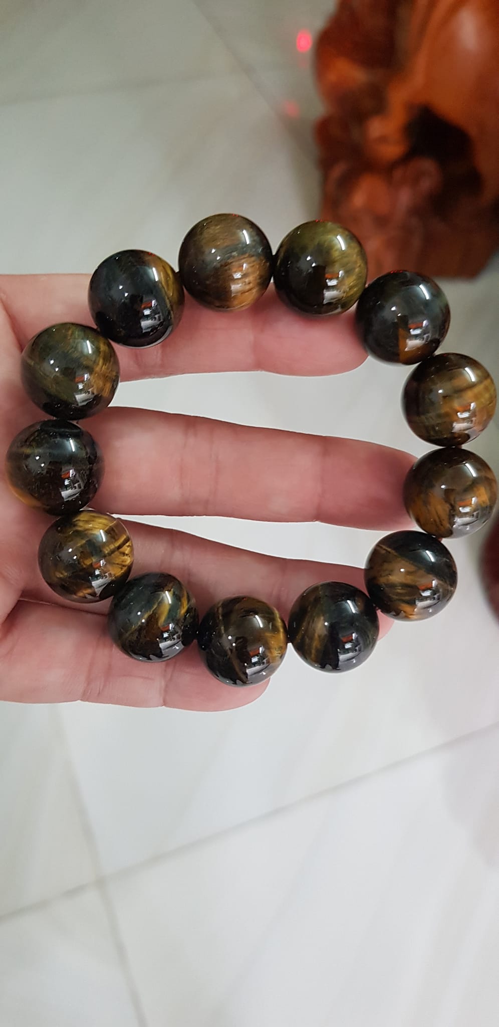 ✨Vòng đeo Tay Nam ĐÁ MẮT HỔ Vàng Xanh tự nhiên size hạt 16mm 13 Viên Nam Mệnh THUỶ Mệnh Mộc đeo Vòng hợp phong thủy làm ăn, kinh doanh tốt đẹp phát đạt tốt sức khỏe ạ