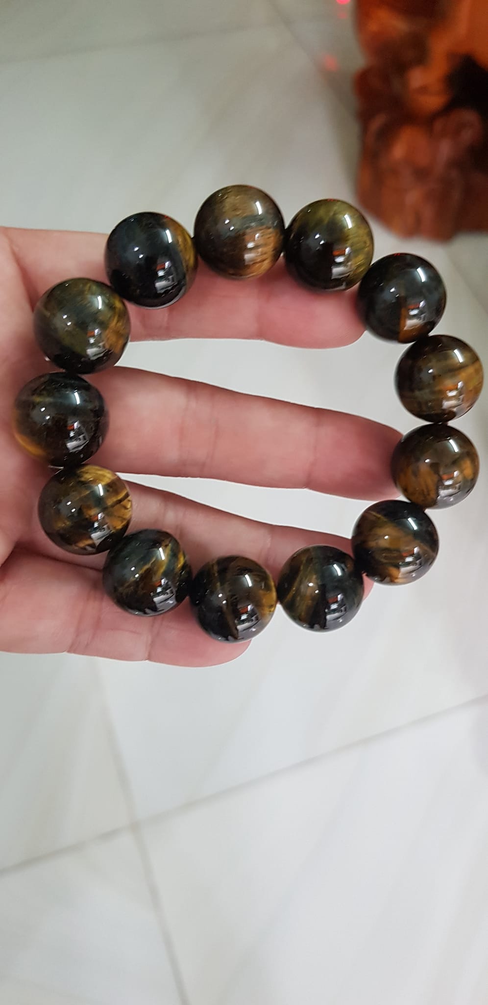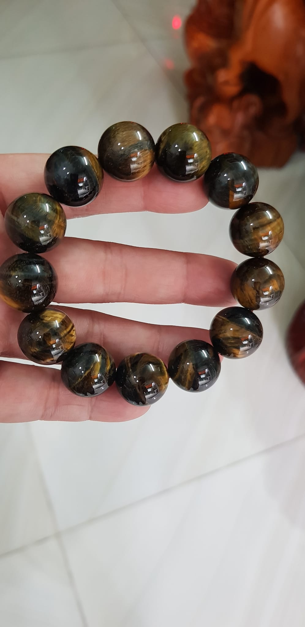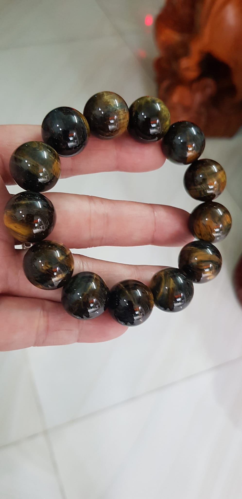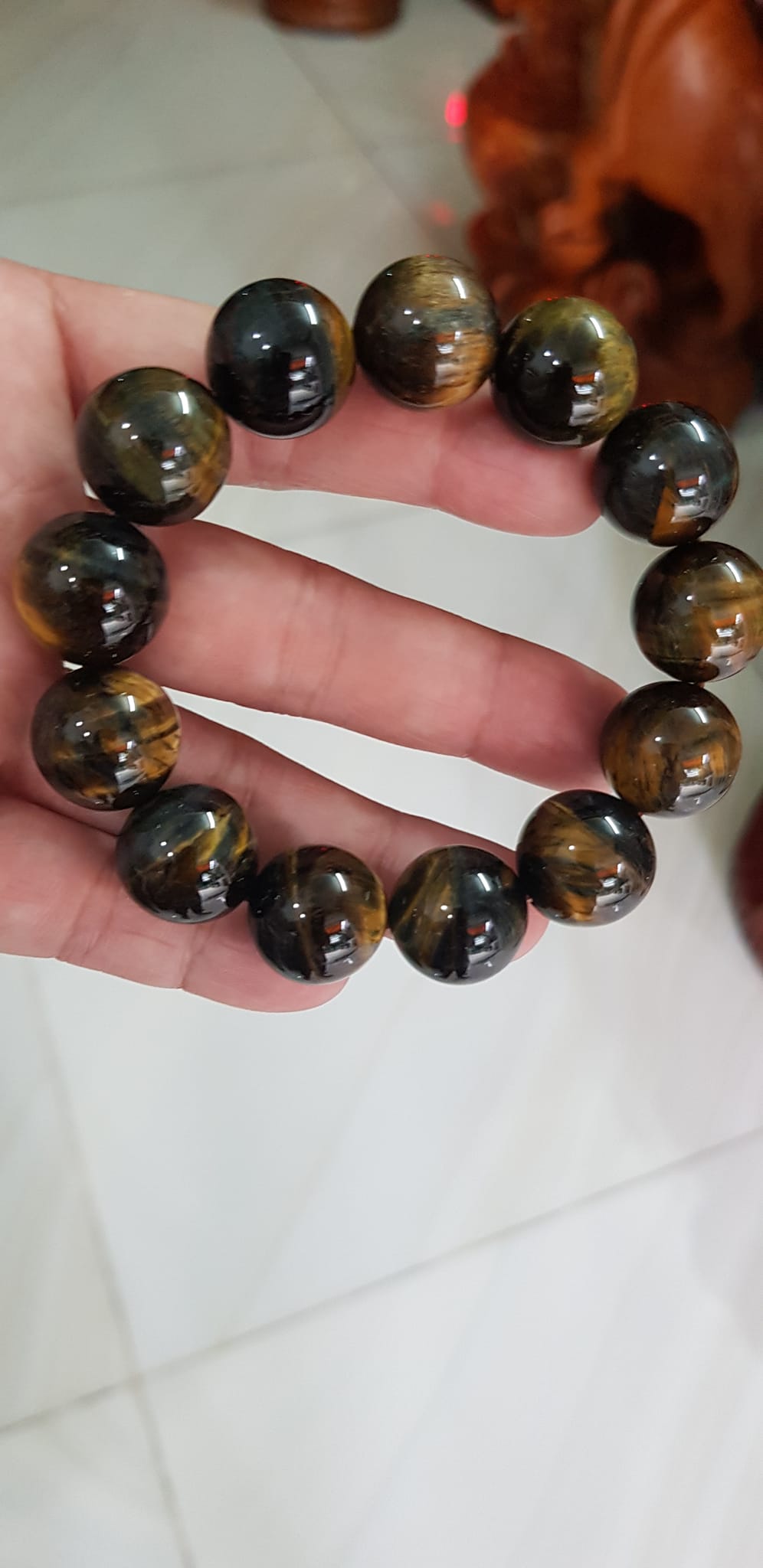 ✨Vòng đeo Tay Nam ĐÁ MẮT HỔ Vàng Xanh tự nhiên size hạt 16mm 13 Viên Nam Mệnh THUỶ Mệnh Mộc đeo Vòng hợp phong thủy làm ăn, kinh doanh tốt đẹp phát đạt tốt sức khỏe ạ