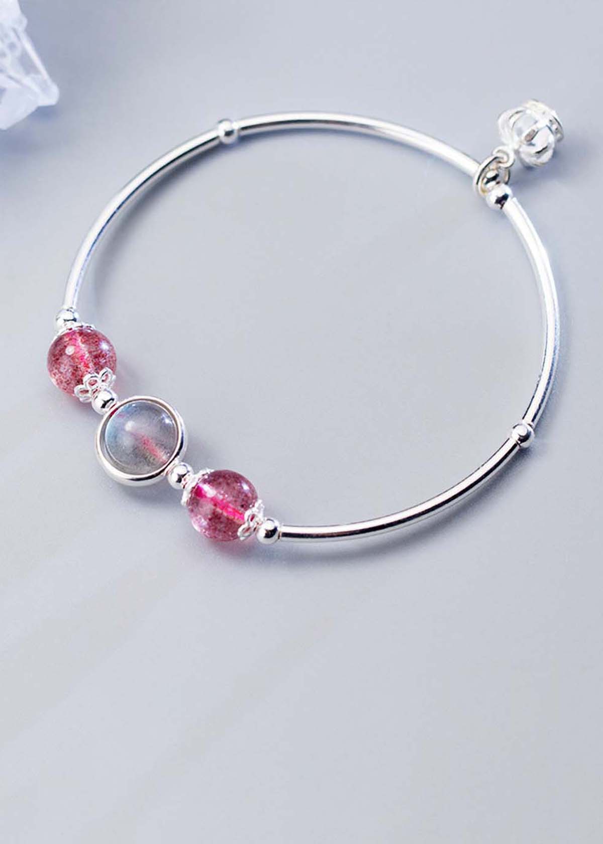 - Vòng Tay Laliz Mệnh Hỏa Đá Thạch Anh Dâu Charm Bạc - TAR.09 được làm từ loài đá tự nhiên kết hợp Bạc 925, không chỉ là một món trang sức bình thường mà