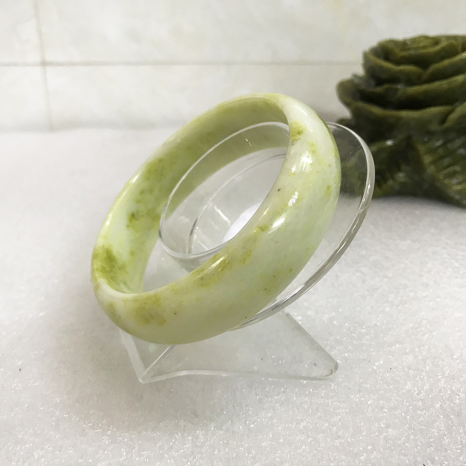 - Kích thước: Size 6.6 cm tương đương với chu vi tay 25 cm. là Bản to hay còn gọi là bản cao đến 2.2 cm, chắc nặng, dày và mát tay, rất độc đáo , tất cả là hình chụp thật, không chỉnh sửa , bên ngoài màu sáng và bóng hơn trong hình. Còn cũng có nhiều size và nhiều màu khác từ đá ngọc thật