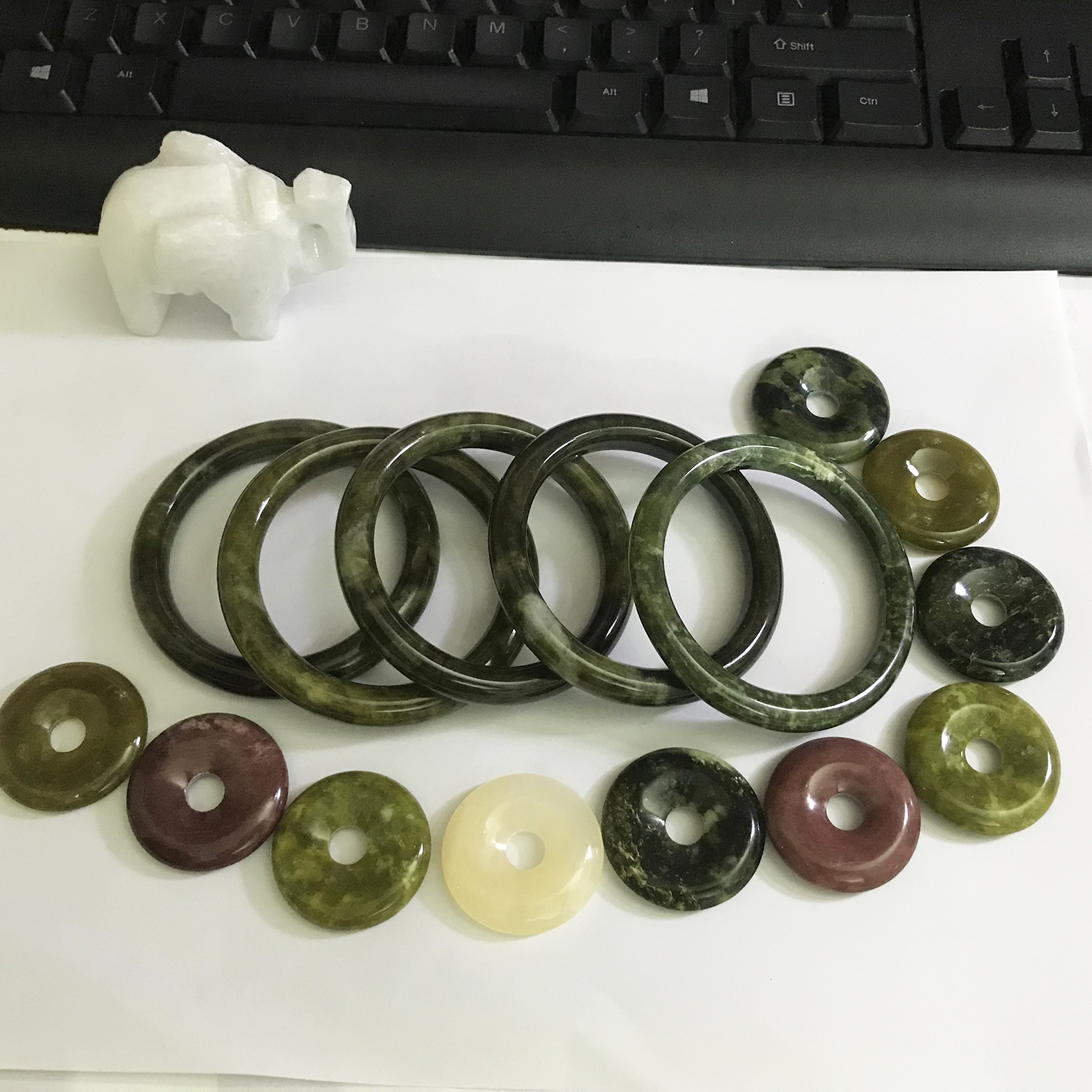 1.Vòng tay: ngọc serpentione một trăm phần trăm từ đá thật đá tự niên của VN chế tác thủ công tại Yen Bai 2.Màu xanh lá đậm, bóng láng như hình thích hợp nhất cho người mệnh Hỏa và Mộc 3.Kích thước: đủ size từ size 5.5 đến 6.0 cm 4.Kiểu dáng: bản đũa tức là tròn như chiếc đũa Tác dụng: Đá ngọc thật có tác dụng giảm căng thẳng, chúng nằm trong lòng đất hàng triệu năm do quá trình biến đổi nhiệt tạo thành nên trong bản thân rất nhiều năng lượng dương có thể hóa giải các sóng có hại và làm ổn định sóng sinh học của cơ thể, giúp cơ thể hoạt bát và cân bằng. Sự dao động tinh thể càng cao thì càng tốt cho sức khỏe con người. Vì vậy, mang đá bên mình, để ở nơi làm việc và để trong không gian sống … có tác dụng thanh lọc và hỗ trợ tích cực cho bản thân người dùng “ Gia hữu thạch tất hưng, nhân hữu thạch tất khang” 5. CÁCH ĐO NI ( KICH THƯỚC ) GÙ TAY BÀN ĐỂ CHỌN VÒNG ĐÚNG SIZE Nếu có thước đây thì bạn lấy thước đây, nếu không có thước dây thì bạn cắt miếng giấy hay vật tương tự miếng giấy (không co giãn), miếng giấy cắt dài cỡ 25 cm rộng cỡ 1cm, sau đó bạn cuốn xung quanh mu/ gù bàn tay cần đeo ( tức là chỗ to nhất của bàn tay khi bạn khum bàn tay lại ( với mục đích là để cho vòng lọt qua chỗ gù bàn tay). Khi hai đầu dây chạm vào nhau thì bạn đánh dấu lại và đo xem nó dài bao nhiêu. Chiều dài của sợi dây đo được chính là chu vi vòng tay của bạn. Được bao nhiêu bạn đối chiếu số liệu dưới đây Chu vi tay 16 cm thì size 5.0 cm / Chu vi tay 17 cm thì size 5.2  cm Chu vi tay 18 cm thì size 5.4 cm/ Chu vi tay 19 cm thì size 5.6 cm Chu vi tay 20 cm thì size 5.8 cm/ Chu vi tay 21 cm thì size 6.0 cm Chu vi tay 22 cm thì size 6.2 cm/ Chu vi tay 23 cm thì size 6.4 cm