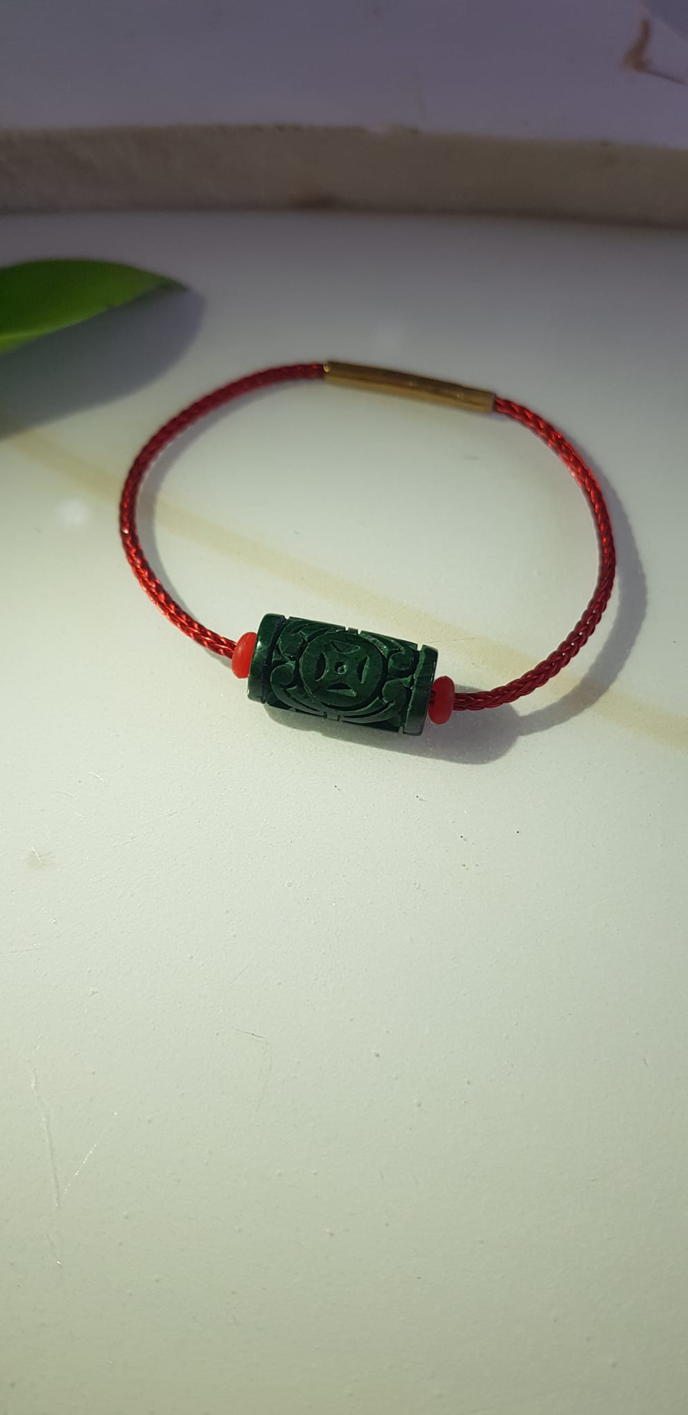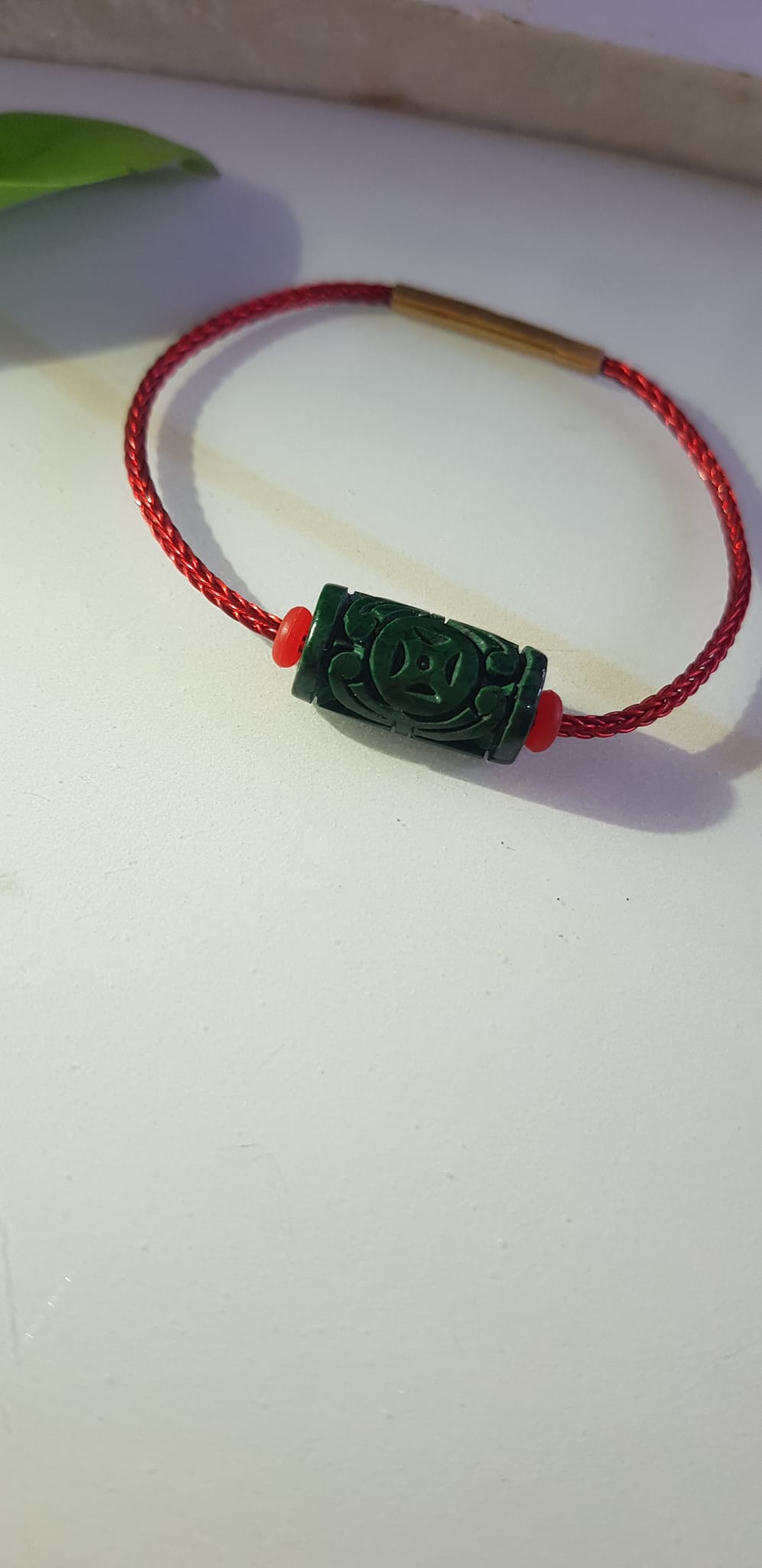✨Vòng tay charm Lu Thống Đồng Tiền Đẹp Đá Cẩm Thạch tự nhiên Xanh Đậm đẹp Dây Đỏ có khoen Hợp Nữ mệnh Thủy Mộc Hỏa ạ