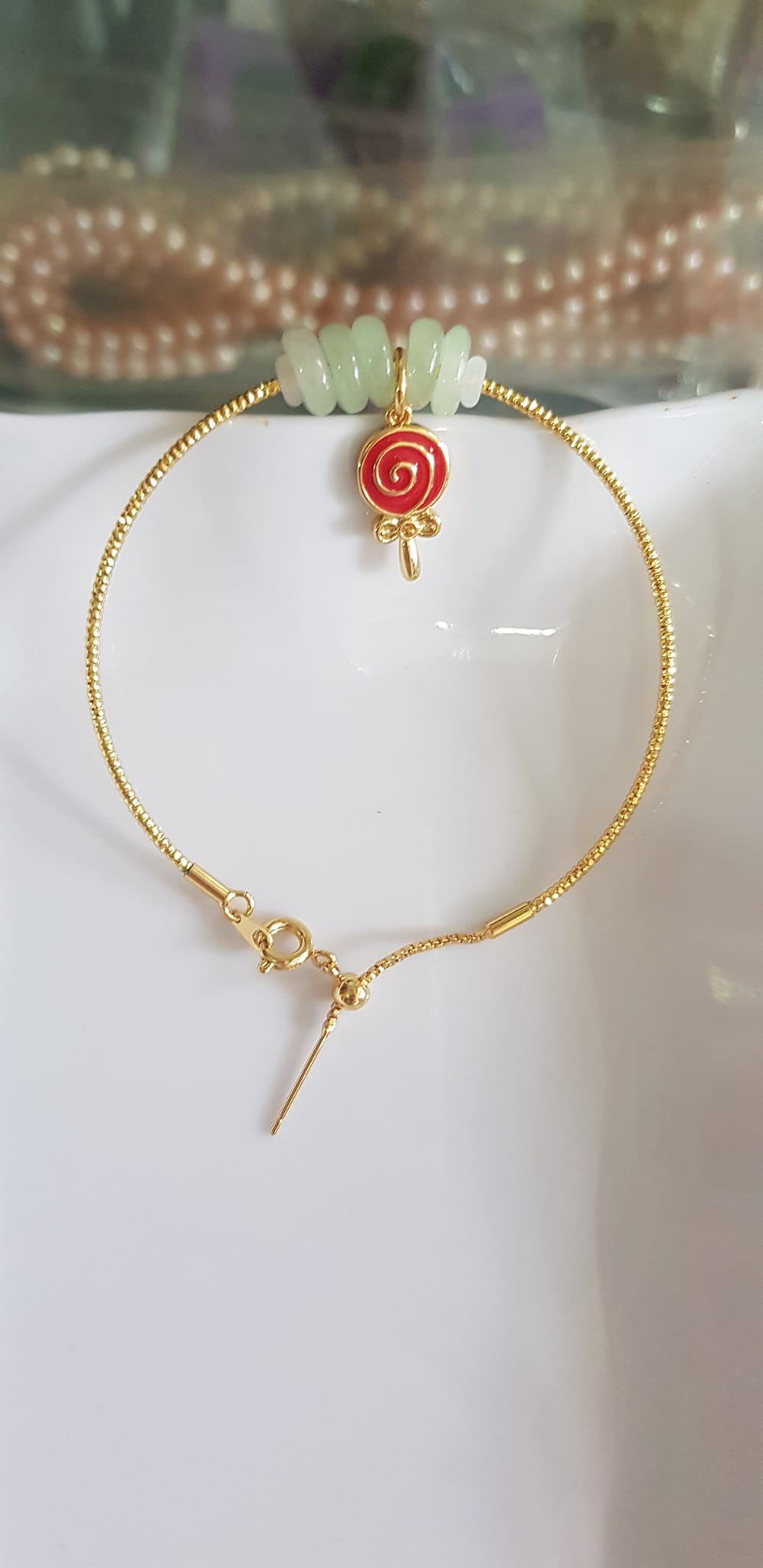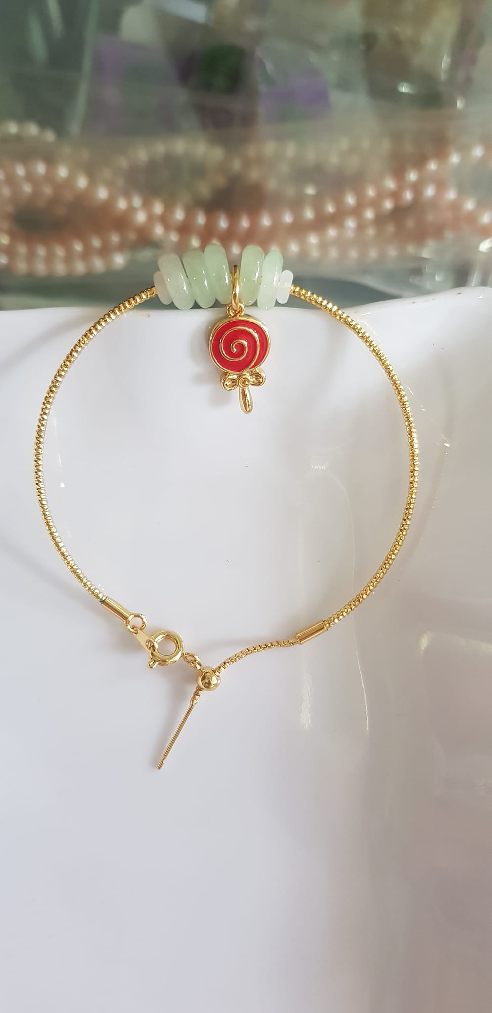 Vòng Tay charm xinh đẹp 5 đồng tiền đá cẩm thạch tự nhiên Đồng tiền Trắng Xanh nhẹ phối charm đỏ kiểu tròn may mắn Vòng màu vàng khoen rút xinh Nữ đeo dễ thương