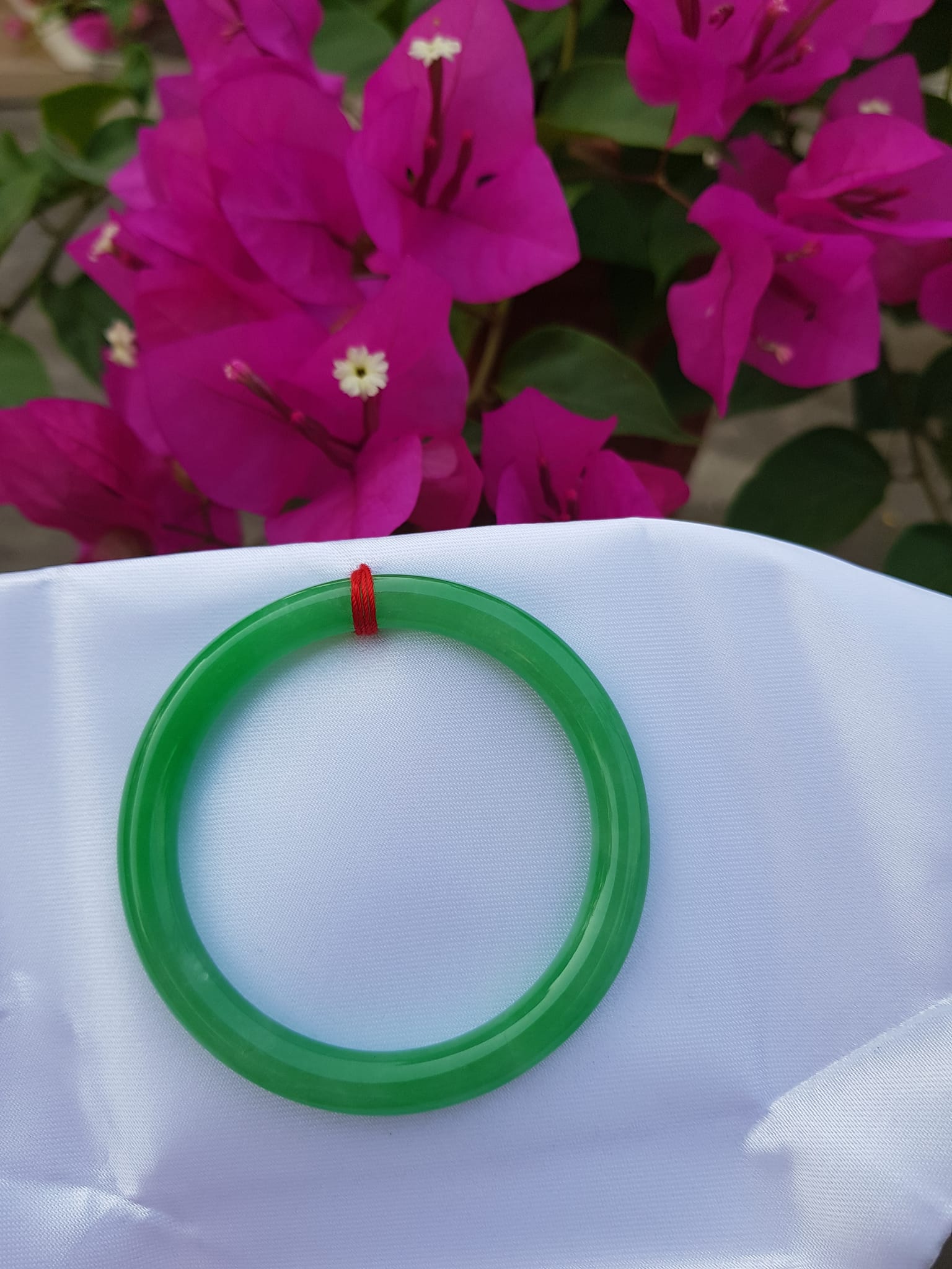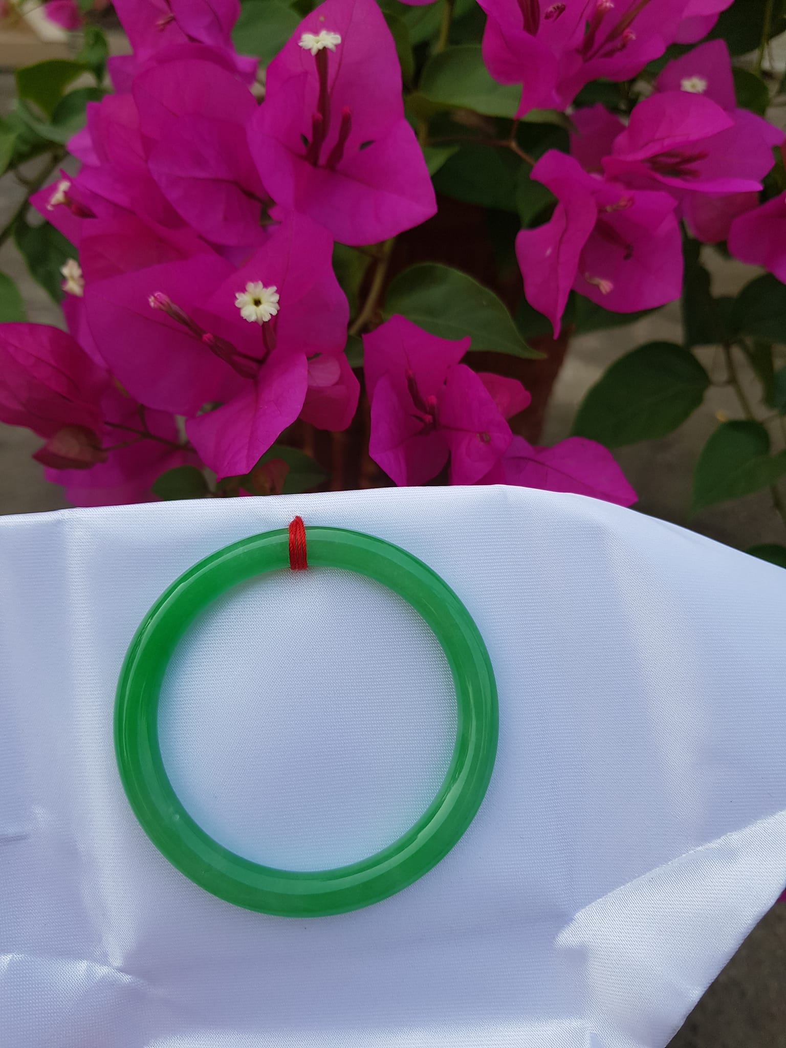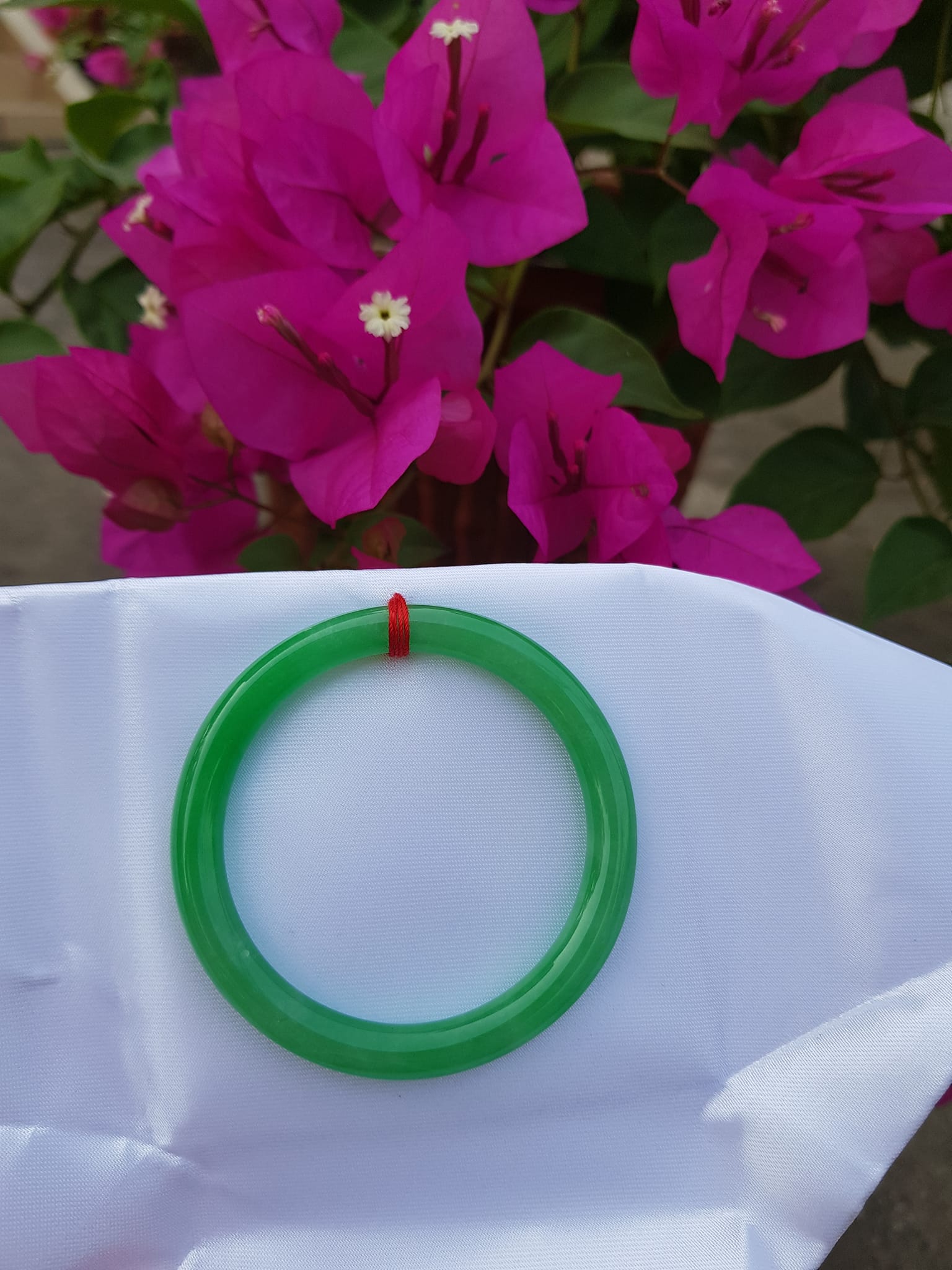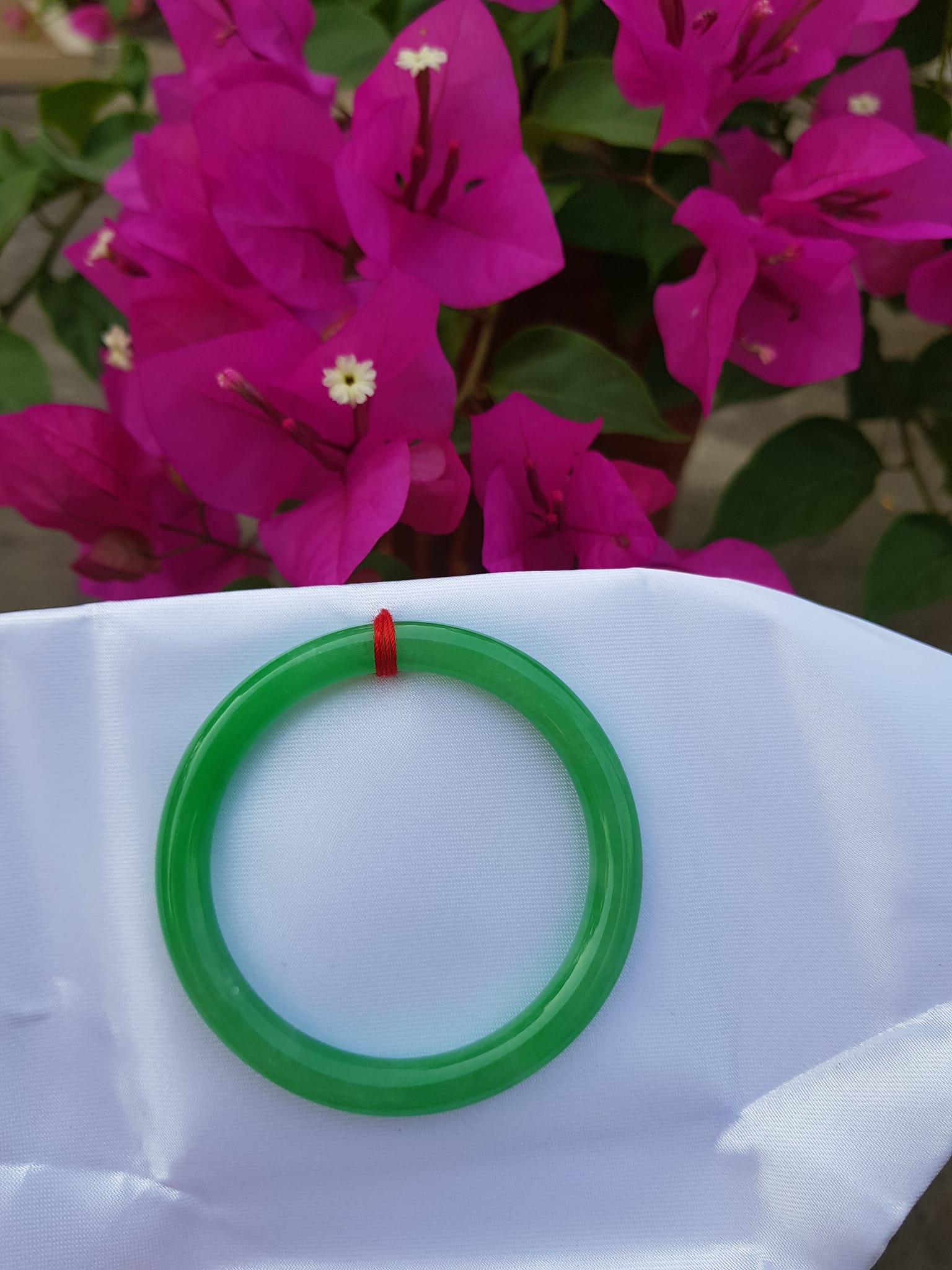 Vòng Tay Đá Cẩm Thạch Lý K49 size 49mm x dầy 7mm Xanh lá đều bóng thiệt đẹp 45kg - 49kg đeo Sunny Q8