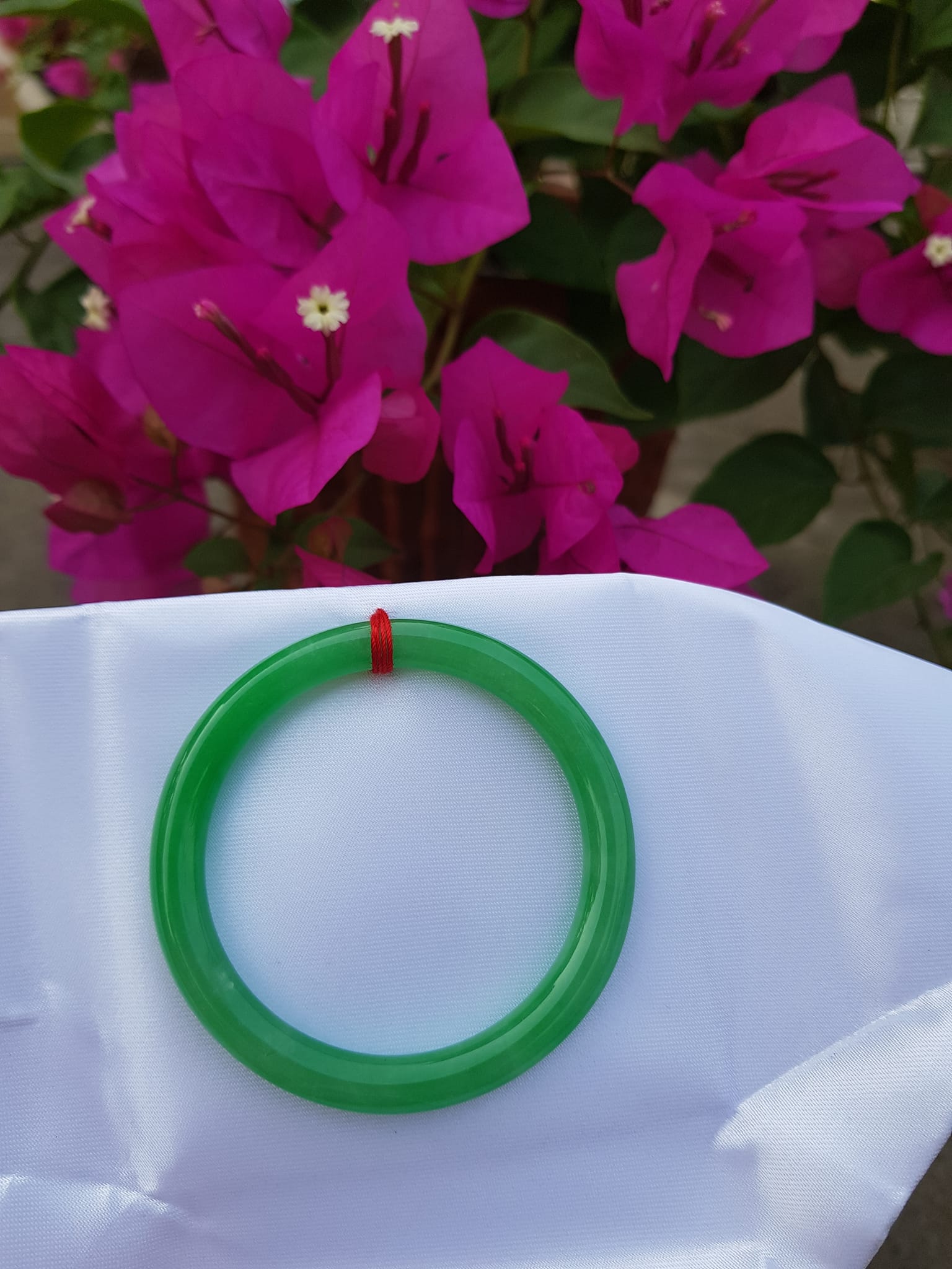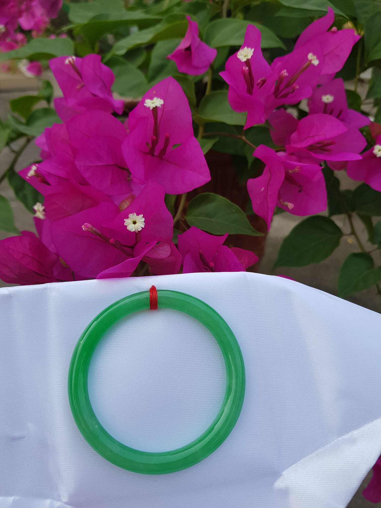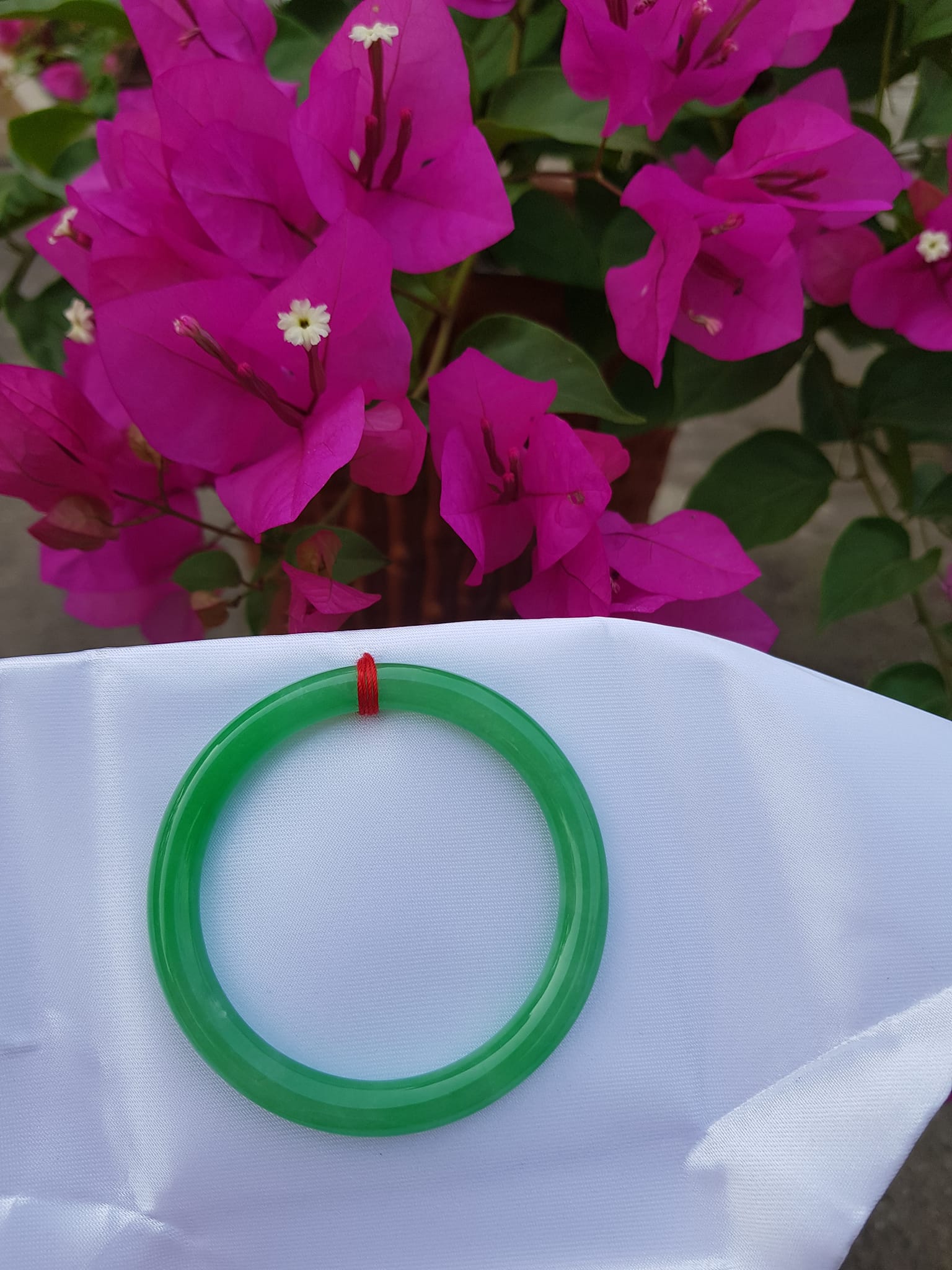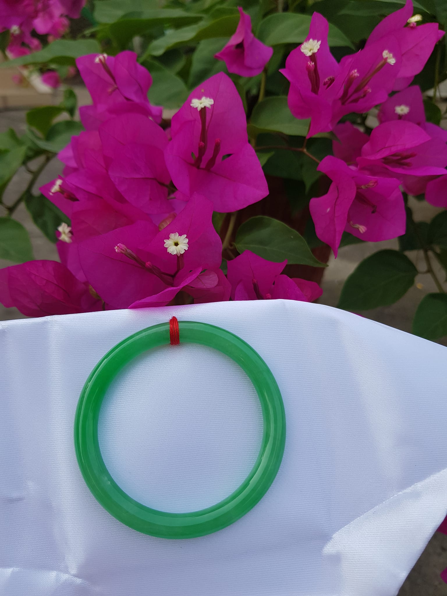 Vòng Tay Đá Cẩm Thạch Lý K49 size 49mm x dầy 7mm Xanh lá đều bóng thiệt đẹp 45kg - 49kg đeo Sunny Q8