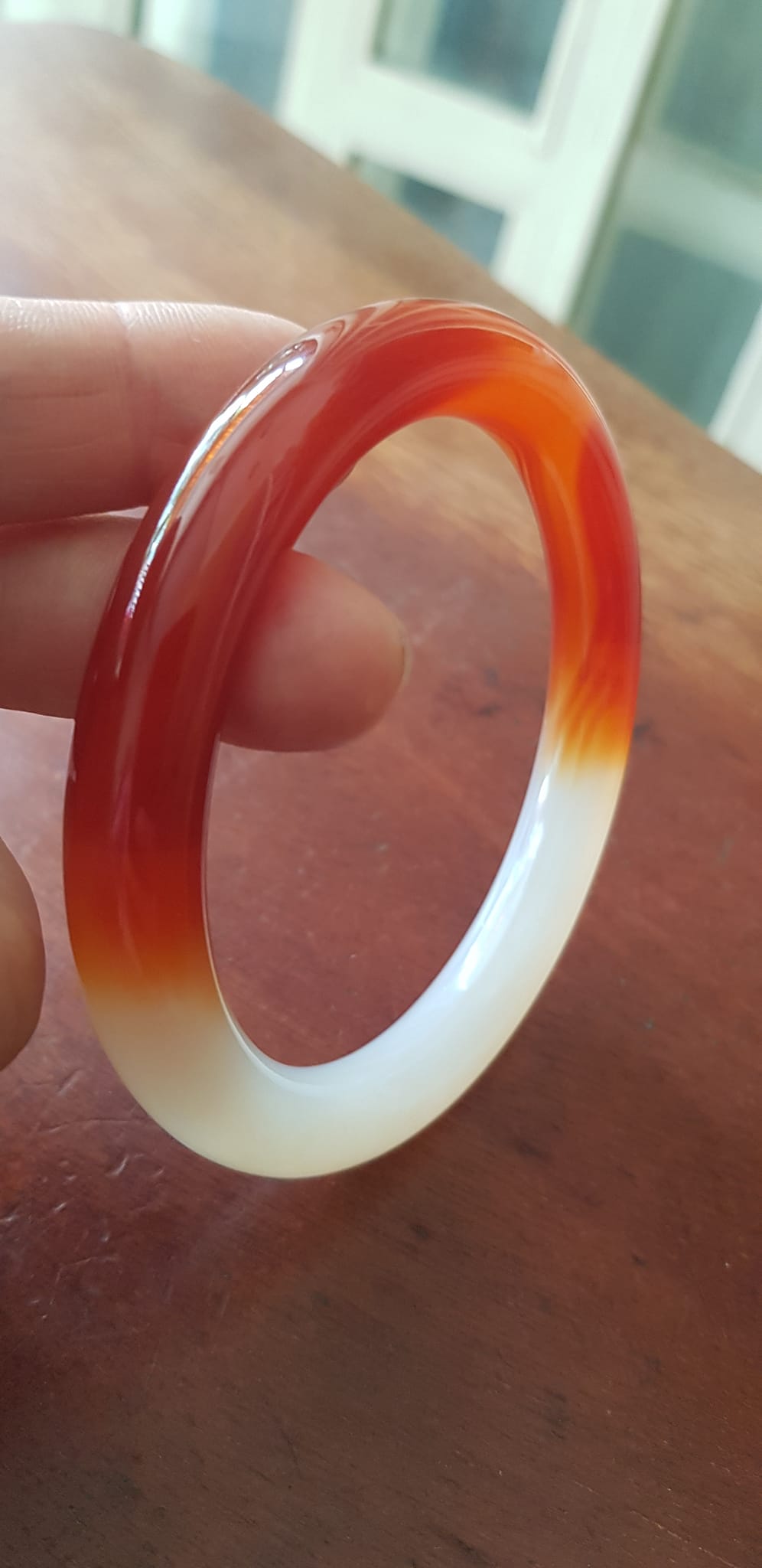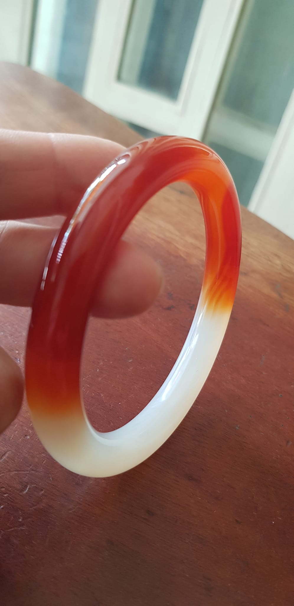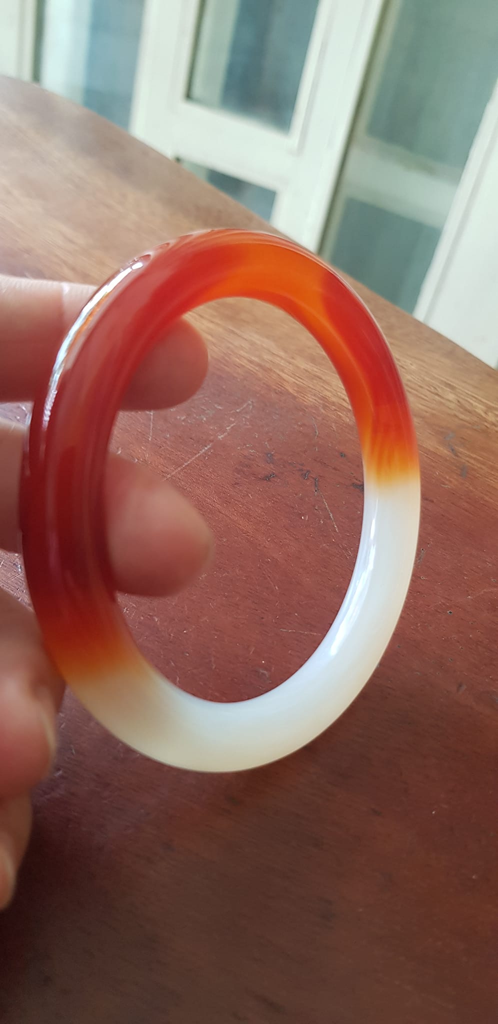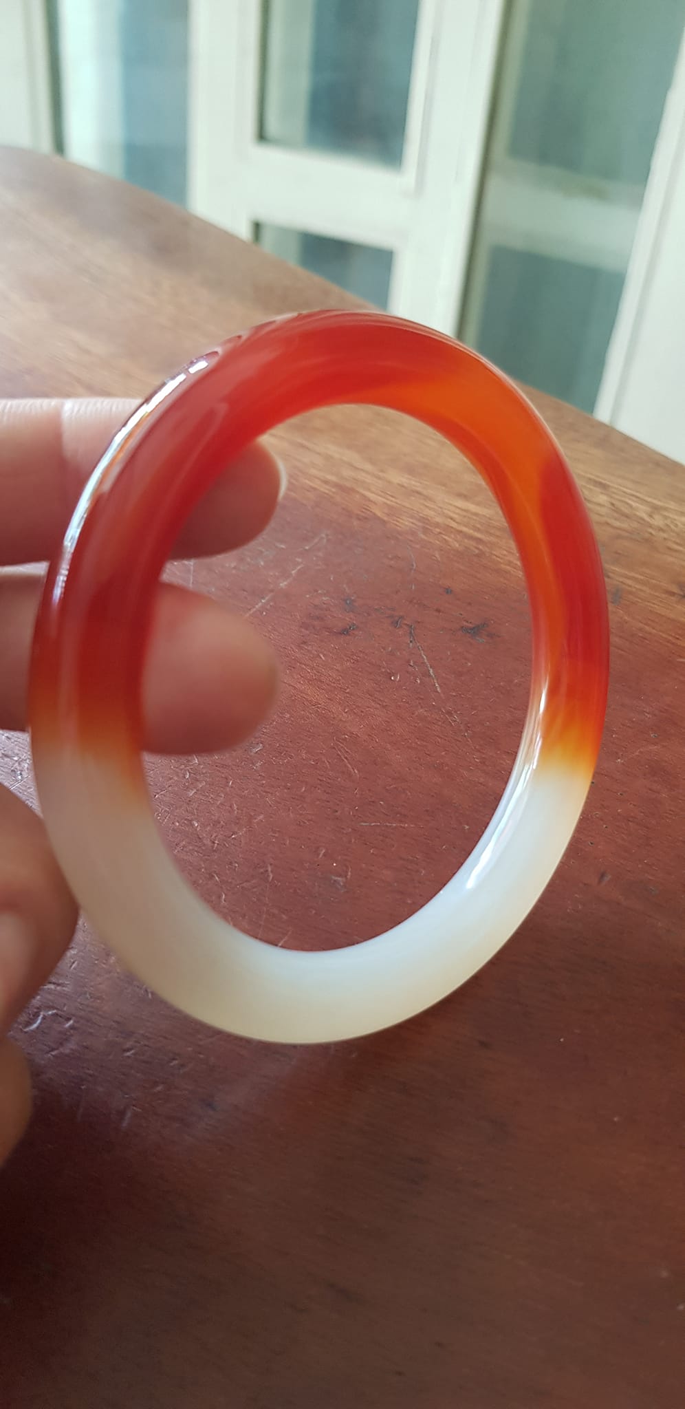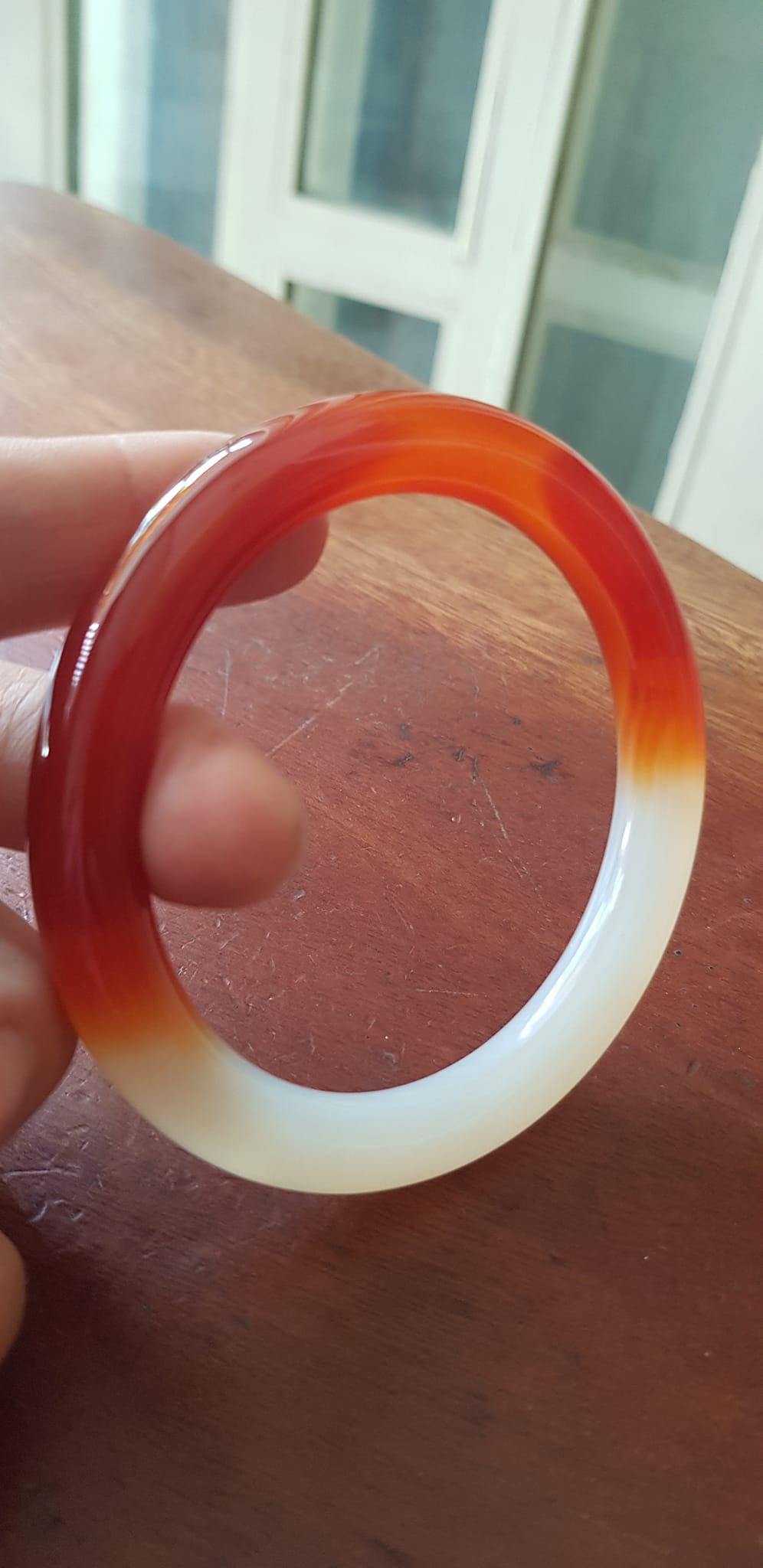 ✨Vòng tay đá mã não rẻ đẹp Đỏ đậm đẹp 1 bên trắng 1 bên Vòng Ni 60mm x chột to 10mm Nữ 60kg - 75kg đeo rất xinh tay ạ