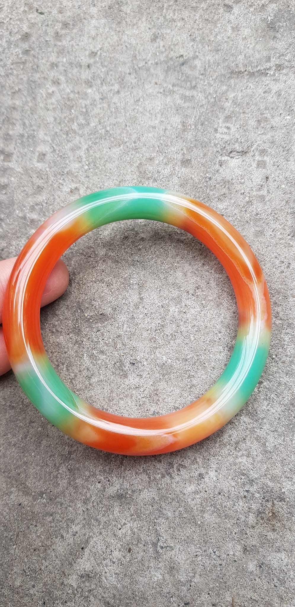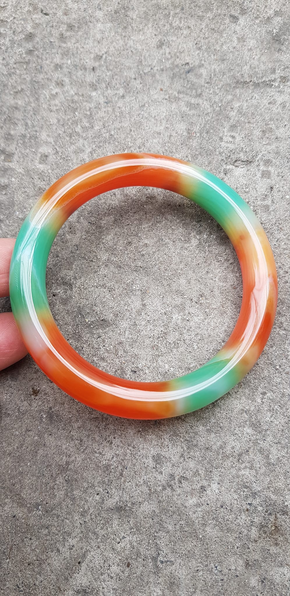 Vòng tay Nữ đá mã não đỏ cam trắng Ni 56mm x chột to 9mm trắng đỏ cam nhẹ 1 bên vân Nữ 55kg-63kg đeo