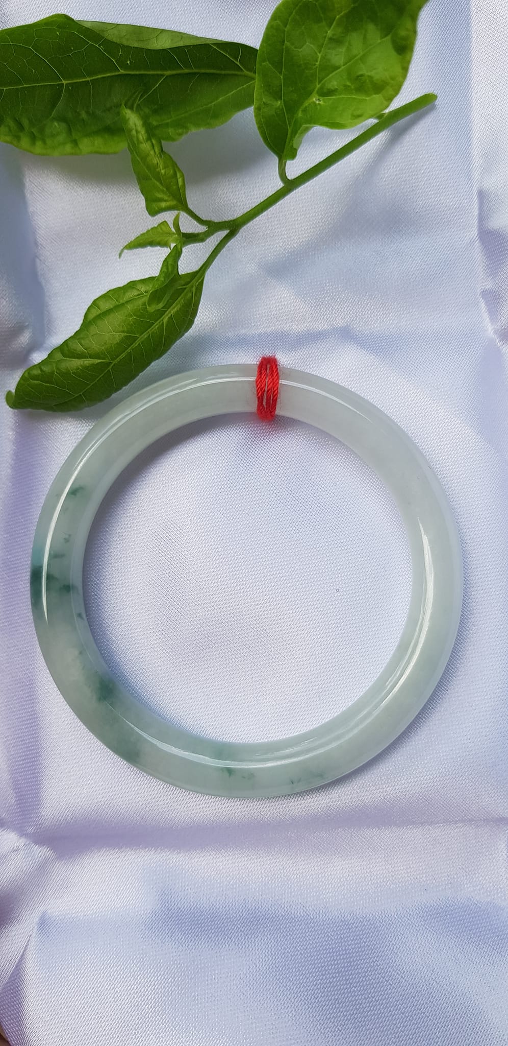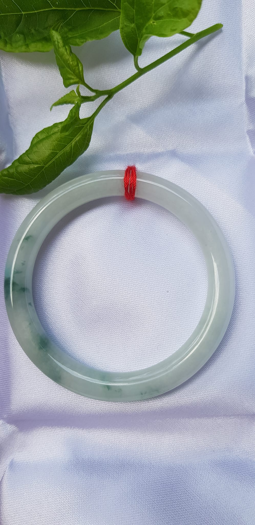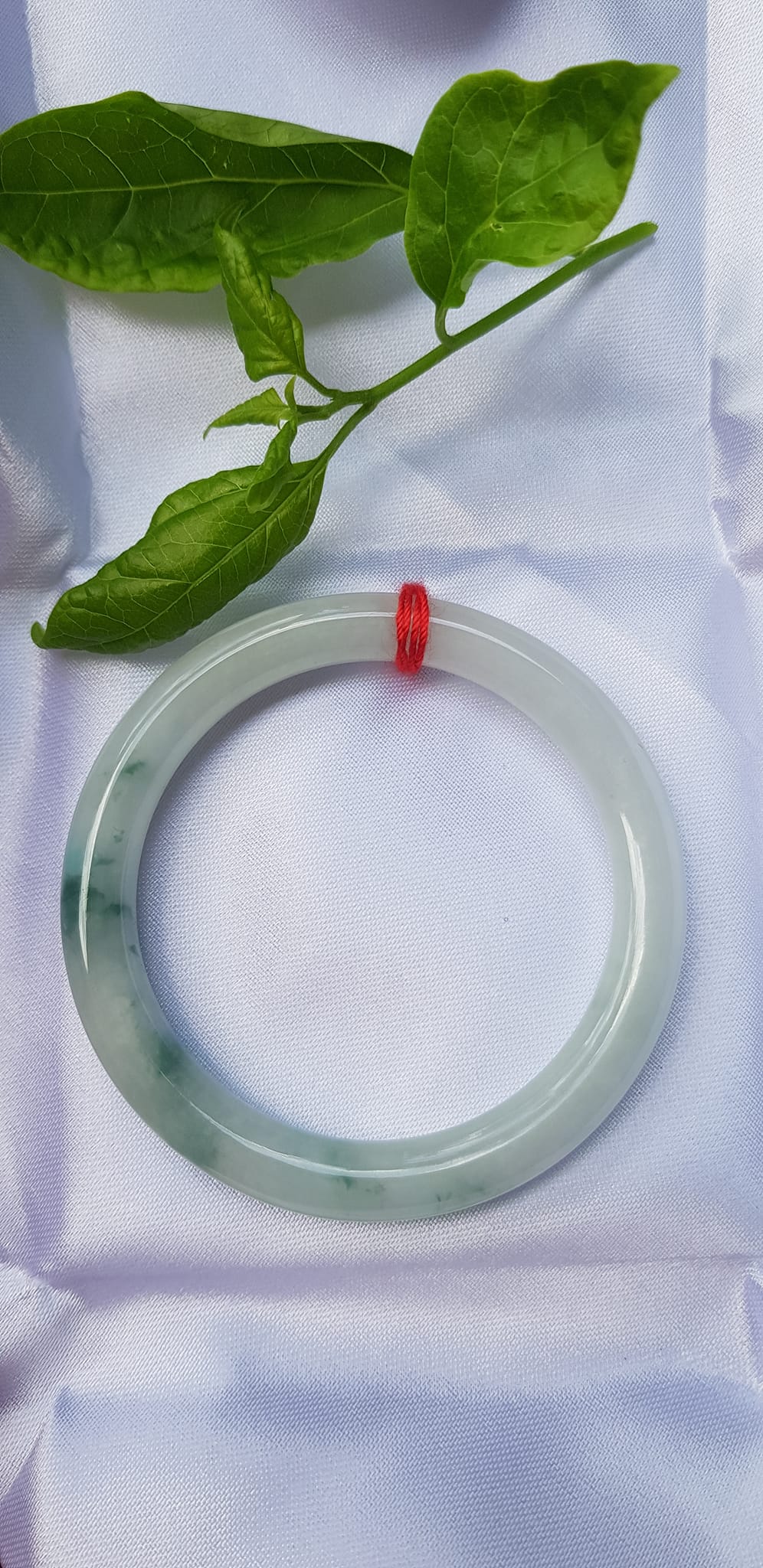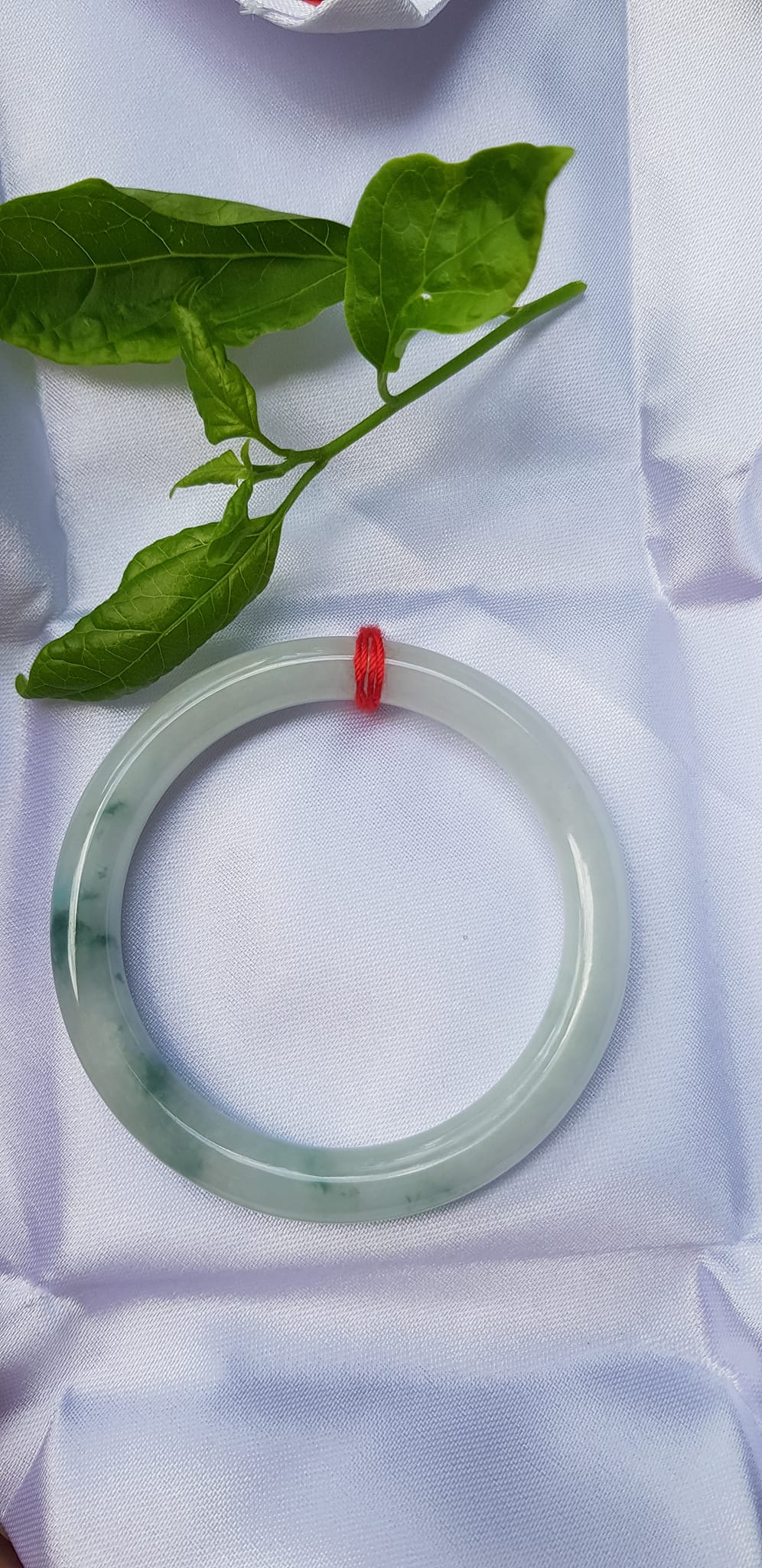 ✨Vòng Tay Đá Ngọc Cẩm Thạch tự nhiên TR LÝ 49mm x cọng 7,2mm Màu bạch ngọc trắng bóng điểm lý xanh rêu rất là đẹp sang Nữ mệnh Kim, mệnh Thủy năngh 47kg - 51kg đeo đẹp ạ