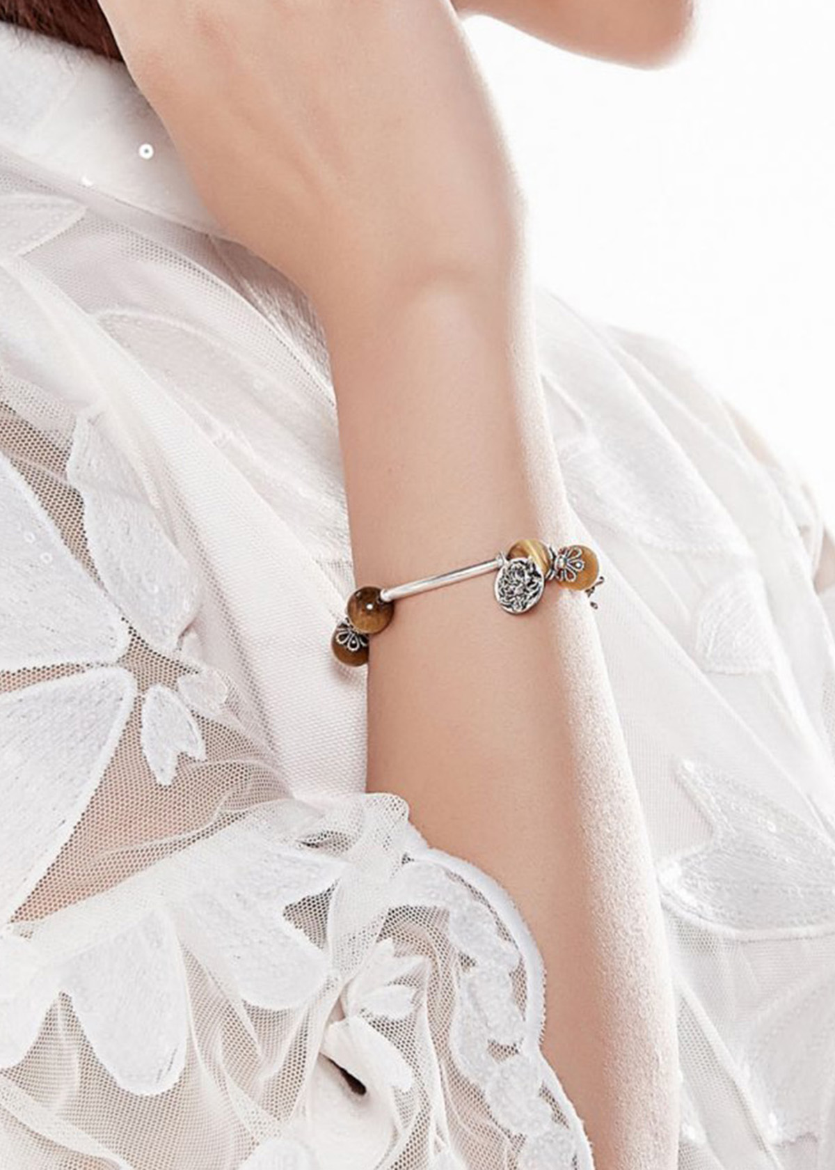 Vòng Tay Đá Thiên Nhiên Phối Charm Bạc - Chất liệu gia công từ đá thiên nhiên, không qua xử lý mang lại lợi ích cho sức khỏe, may mắn trong phong thủy cho người đeo. -