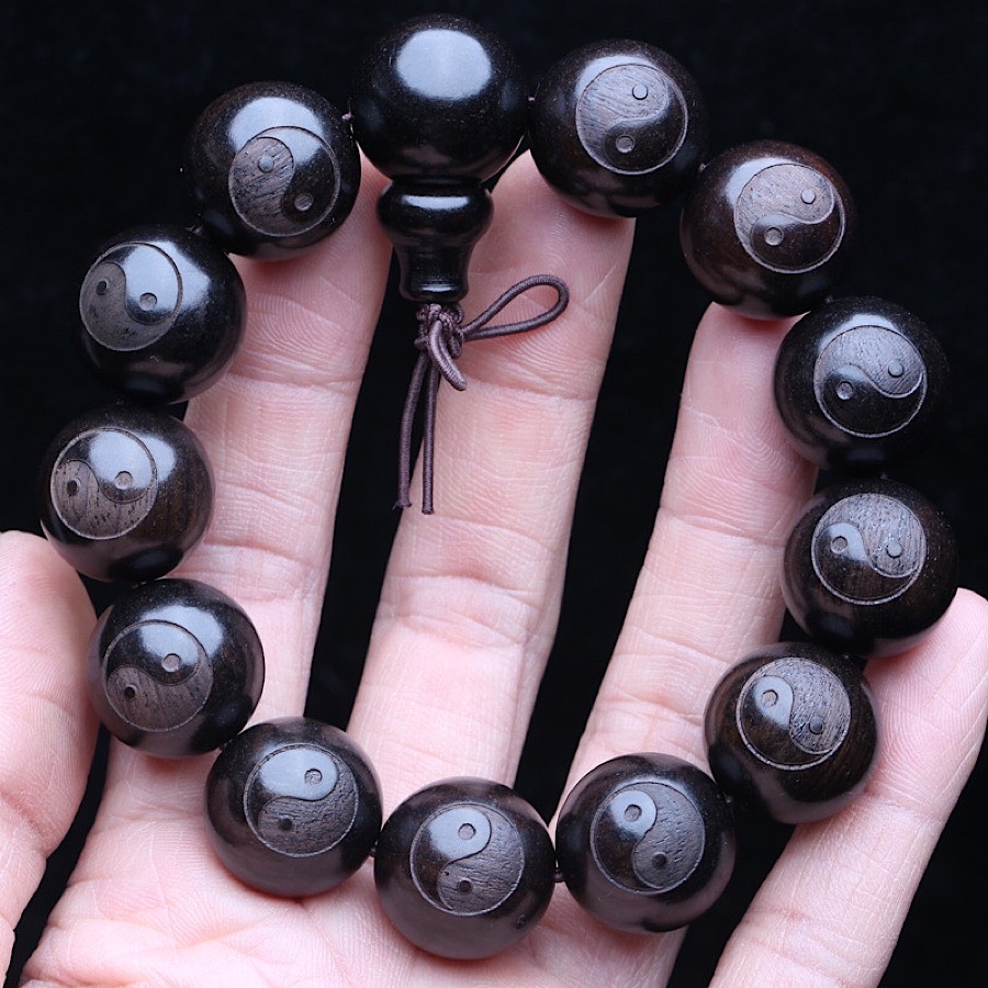 ✨VÒNG TAY GỖ MUN KHẮC THÁI CỰC 15mm