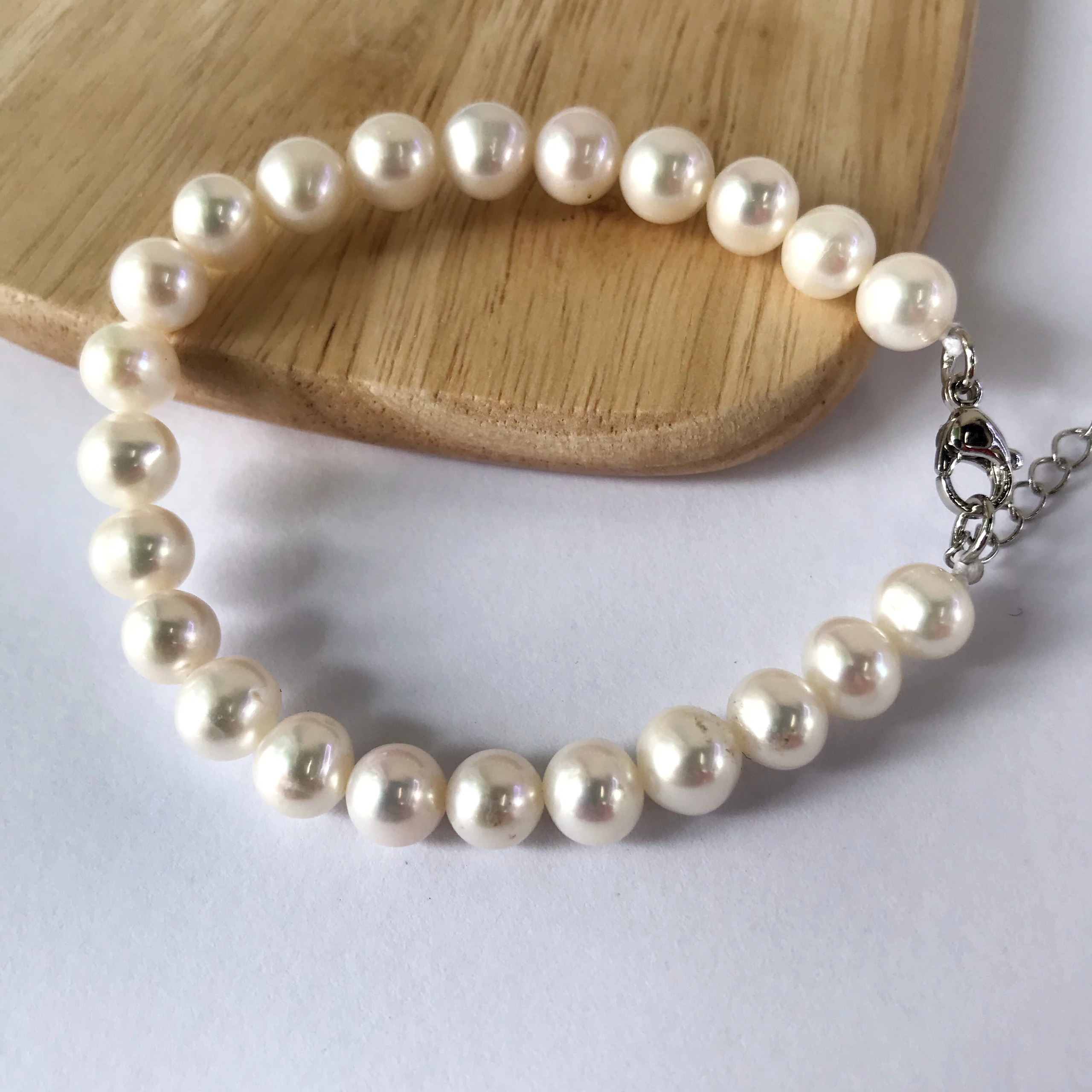 Vòng Tay Ngọc Trai 7-8mm Màu Trắng