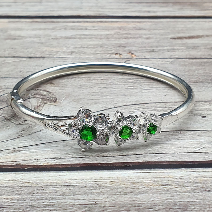 ✨Vòng Tay, Lắc Tay Nữ Dạng Kiềng Tam Hoa Đá Xanh Bạc S925 BẠC HIỂU MINH LTU305S