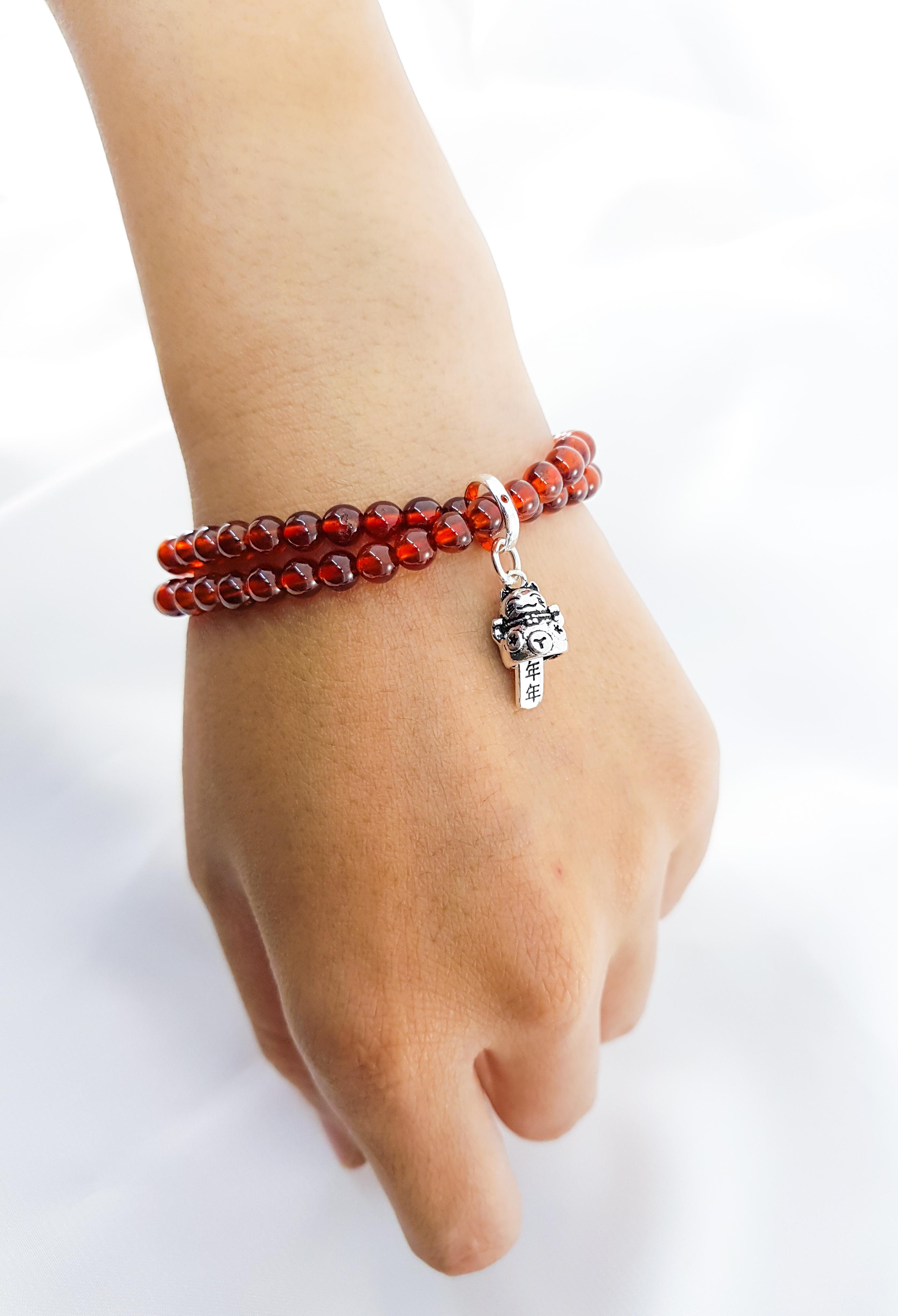 ✨Vòng Tay Mệnh Hỏa, Thổ Đá Garnet Mix Charm Mèo May Mắn