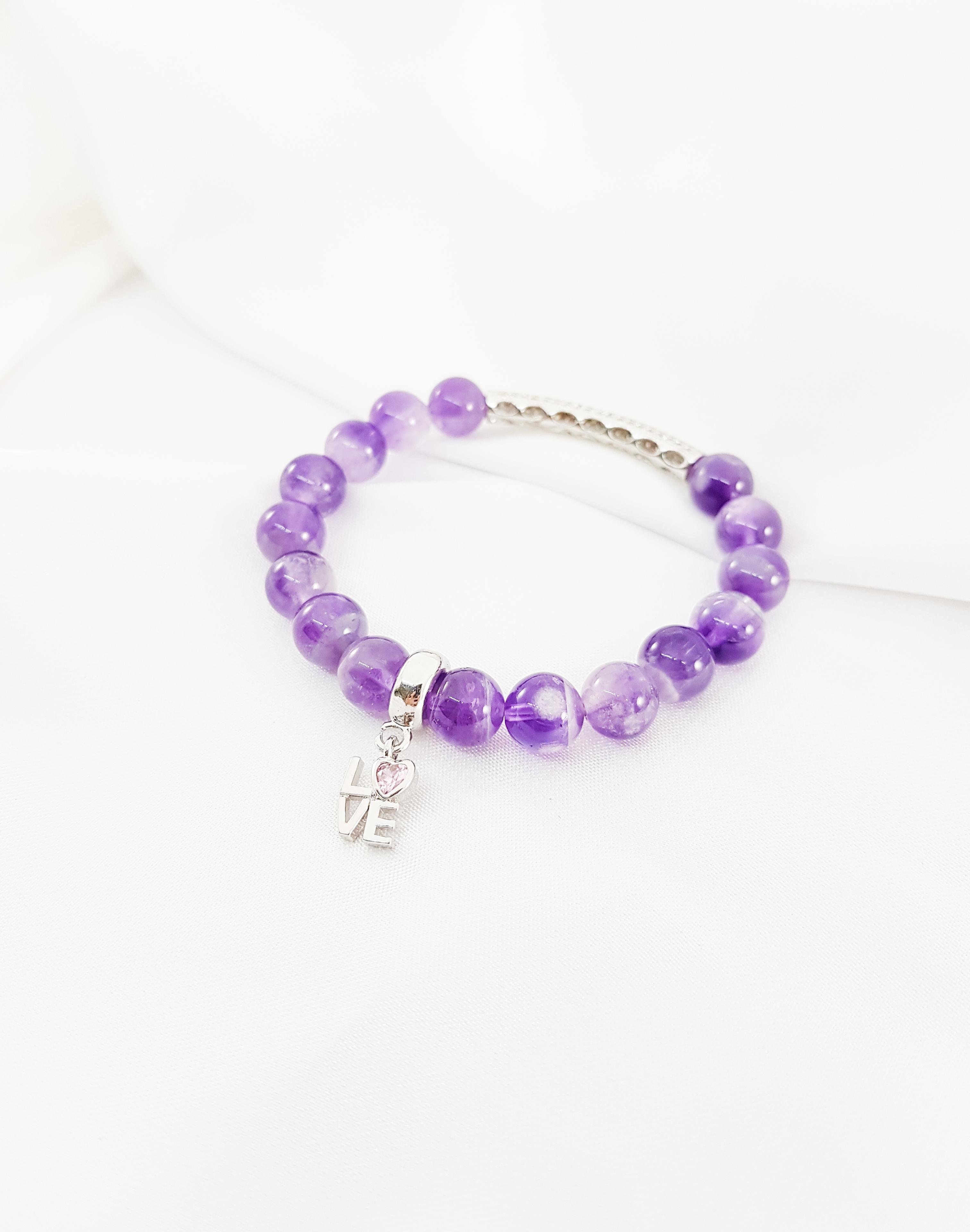 ✨Vòng tay mệnh hỏa, thổ đá thạch anh tím mix charm LOVE