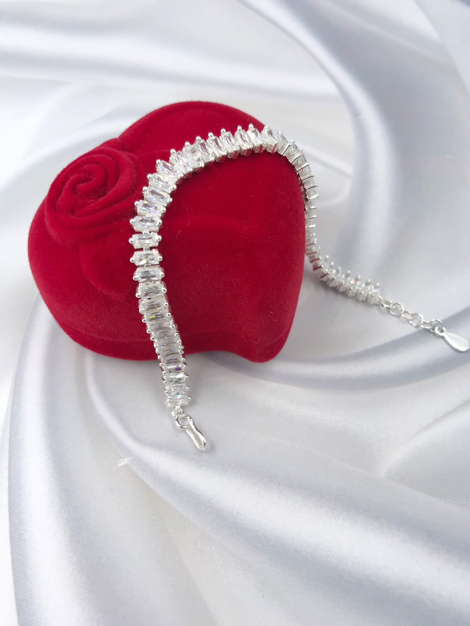Vòng Tay, Lắc Tay Nữ Bạc chuẩn 925  đính dãy đá CZ cao cấp chống xước, sáng đẹp là món quà rất xinh sắn và dễ thương gửi đến các nàng xinh đẹp.  Chất liệu Bạc