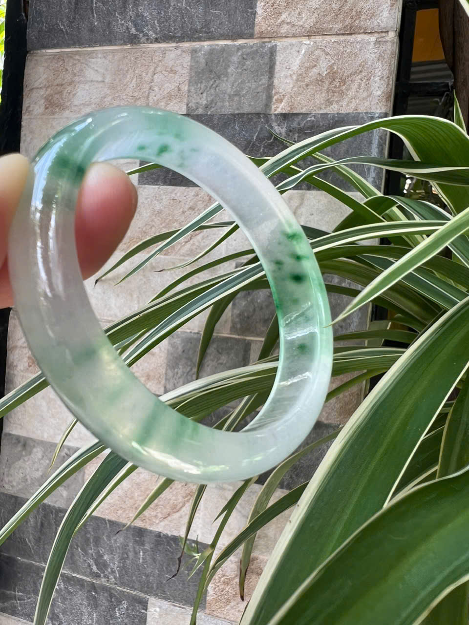 Vòng tay Nữ Đá Cẩm Thạch mới TR Lý 57 mm x cọng 7,5mm Màu Xanh lý tươi trắng 2 bên đều vòng đẹp Nữ 55kg - 64kg đeo đẹp món quà tặng chính mình