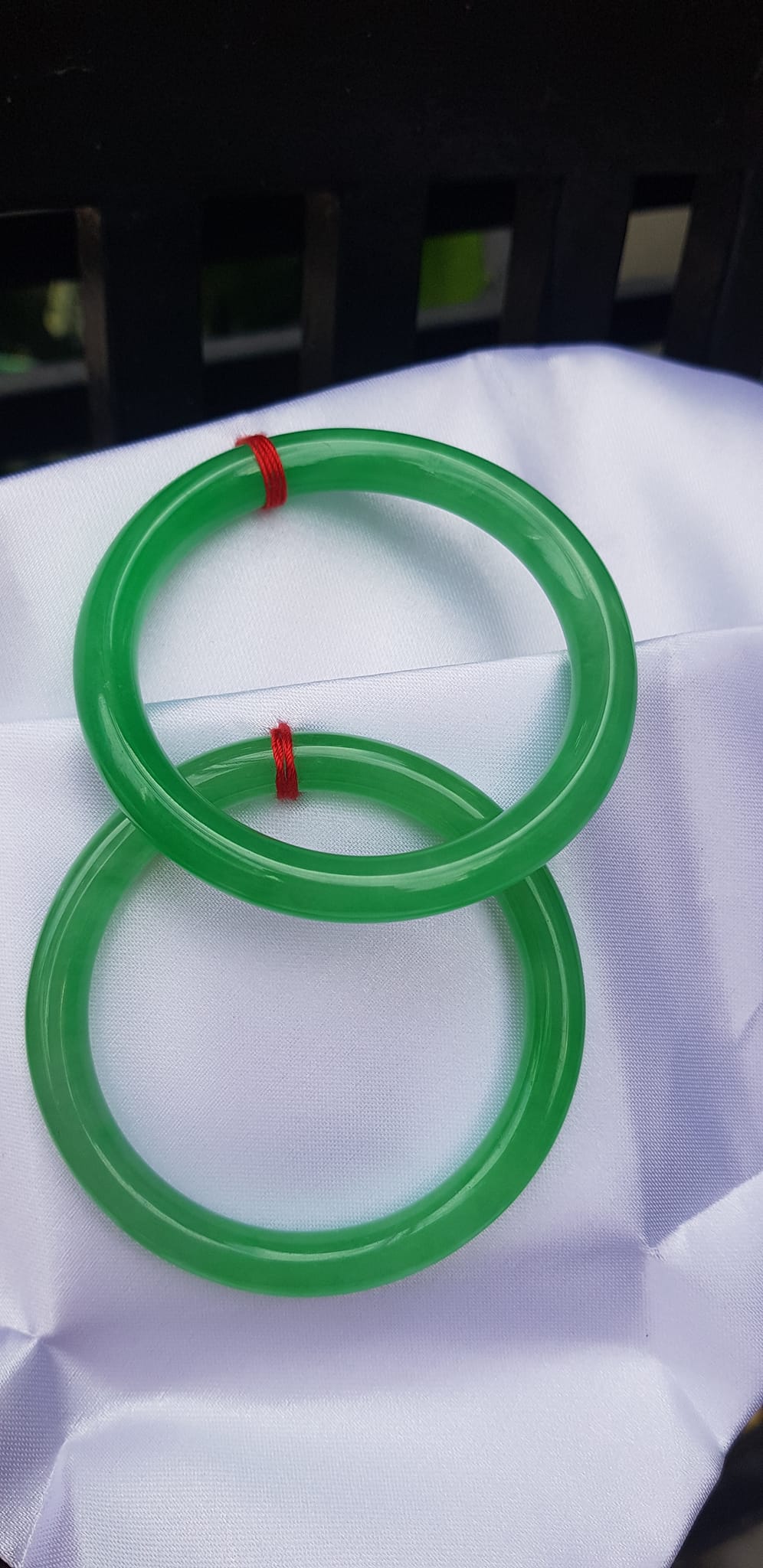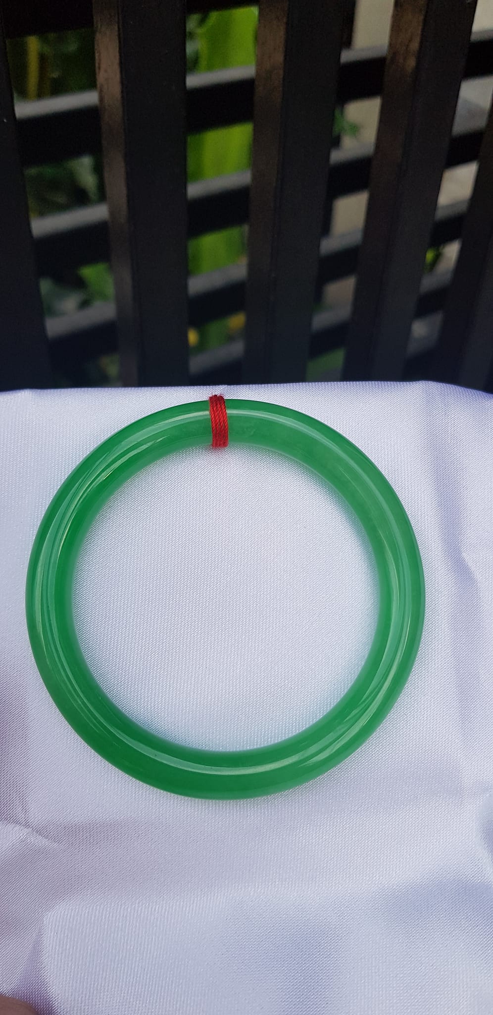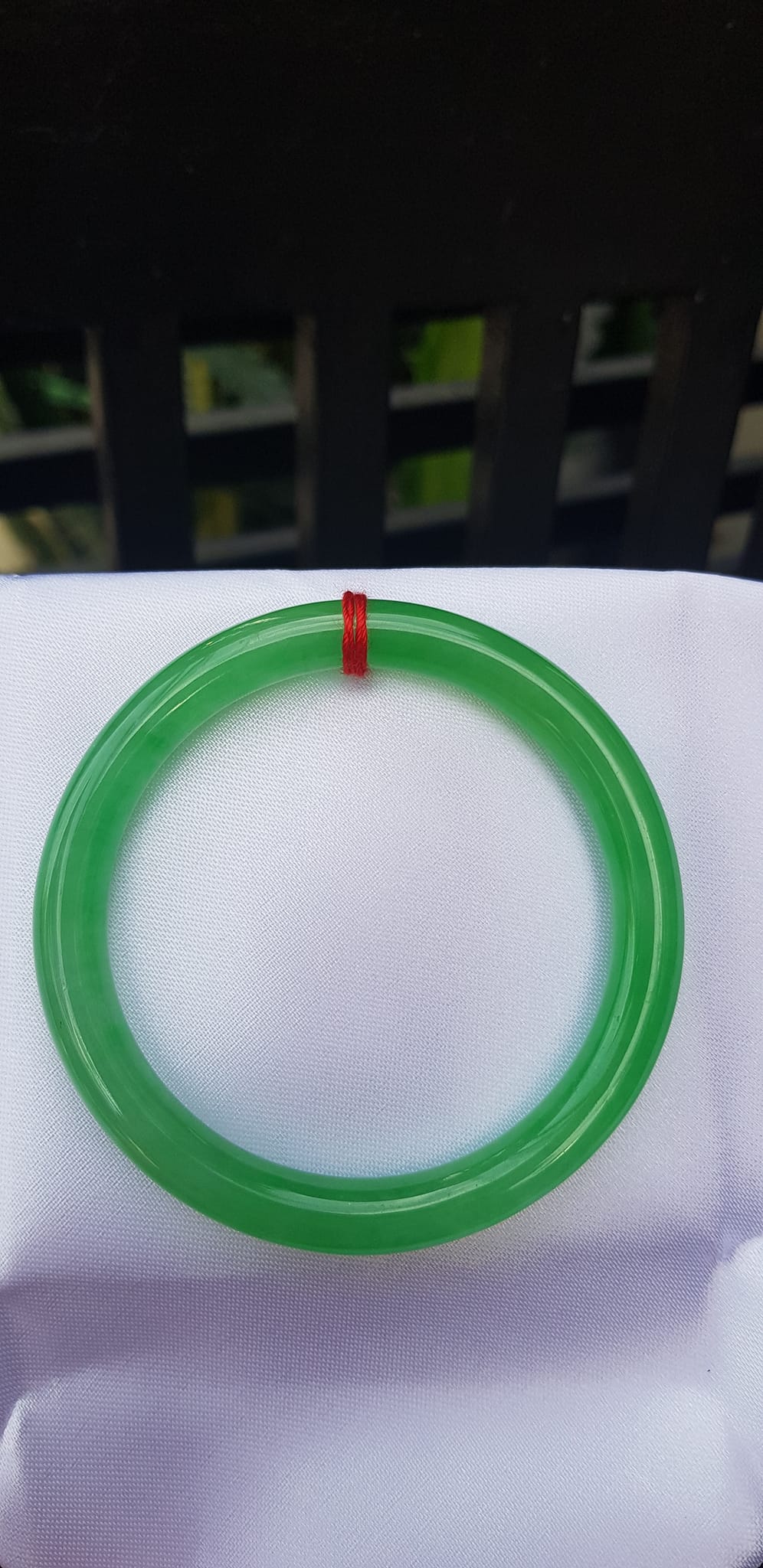 Vòng cẩm thạch Đ Lý 52mm x dầy 7,8mm màu xanh lá tươi hợp Nữ mệnh Mộc mệnh Hỏa 52kg - 56kg đeo ạ