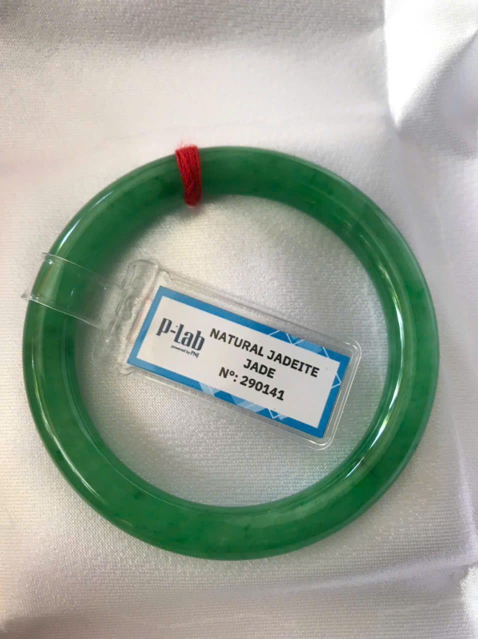 *** Vòng kiểm định P Lab No 290141 Màu Xanh lý đậm đều bóng đẹp nữ 50kg - 54kg đeo ạ