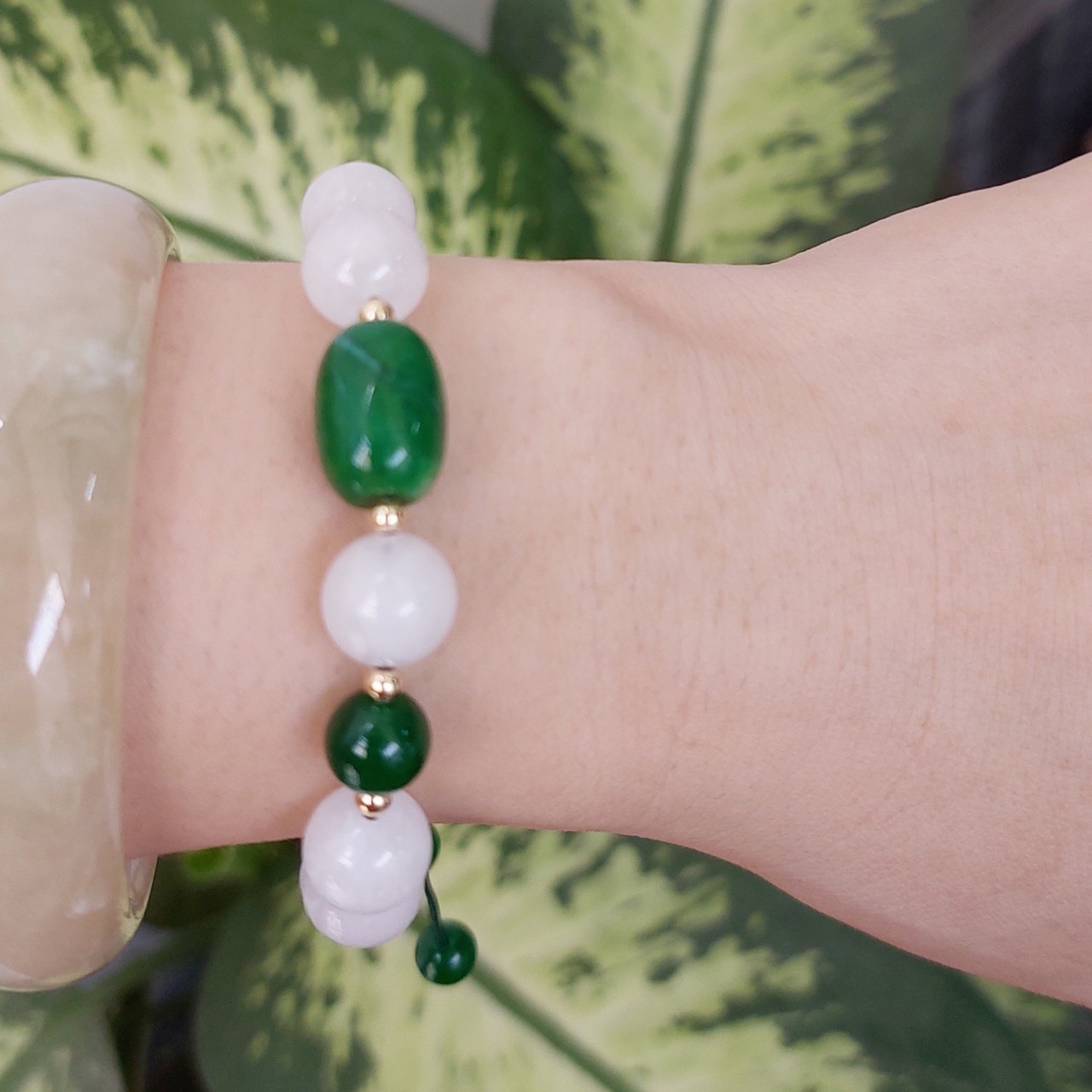 Vòng tay Nữ phong thủy đá mã não trắng mix lu thống sơn thủy và bi bạc kết dây thời trang