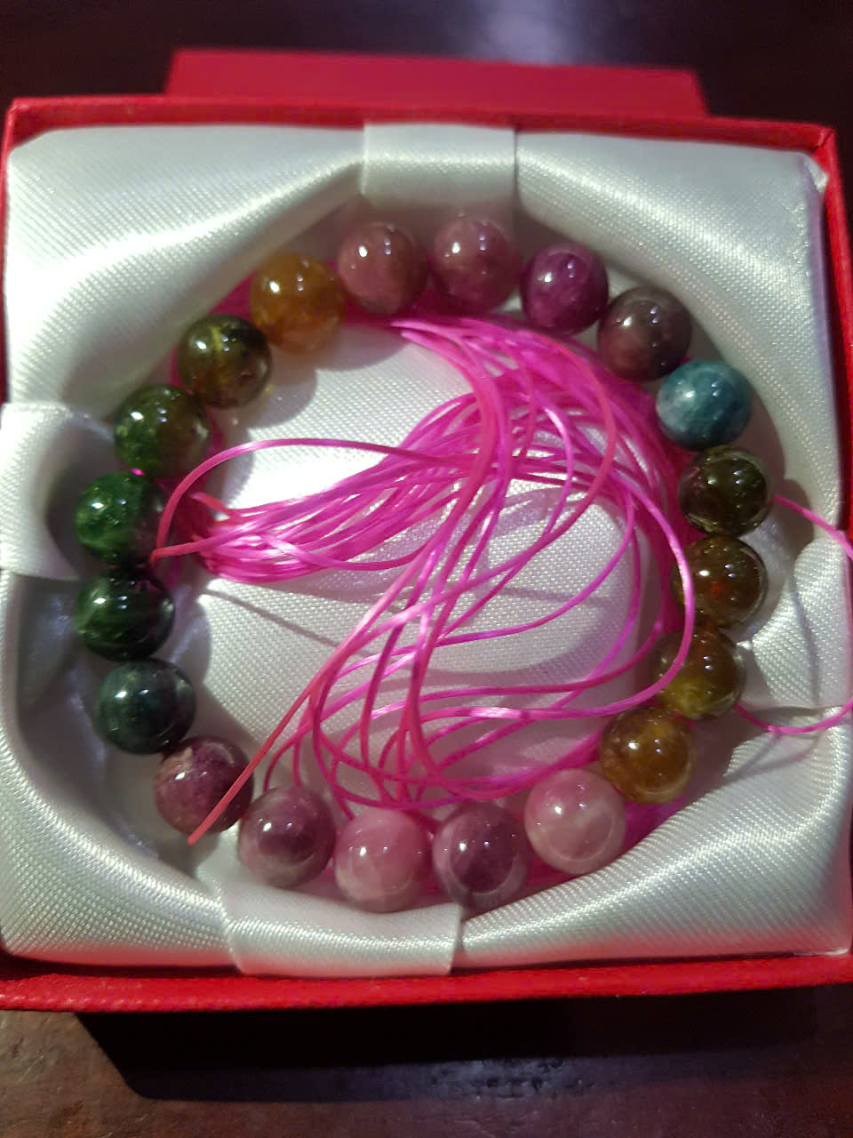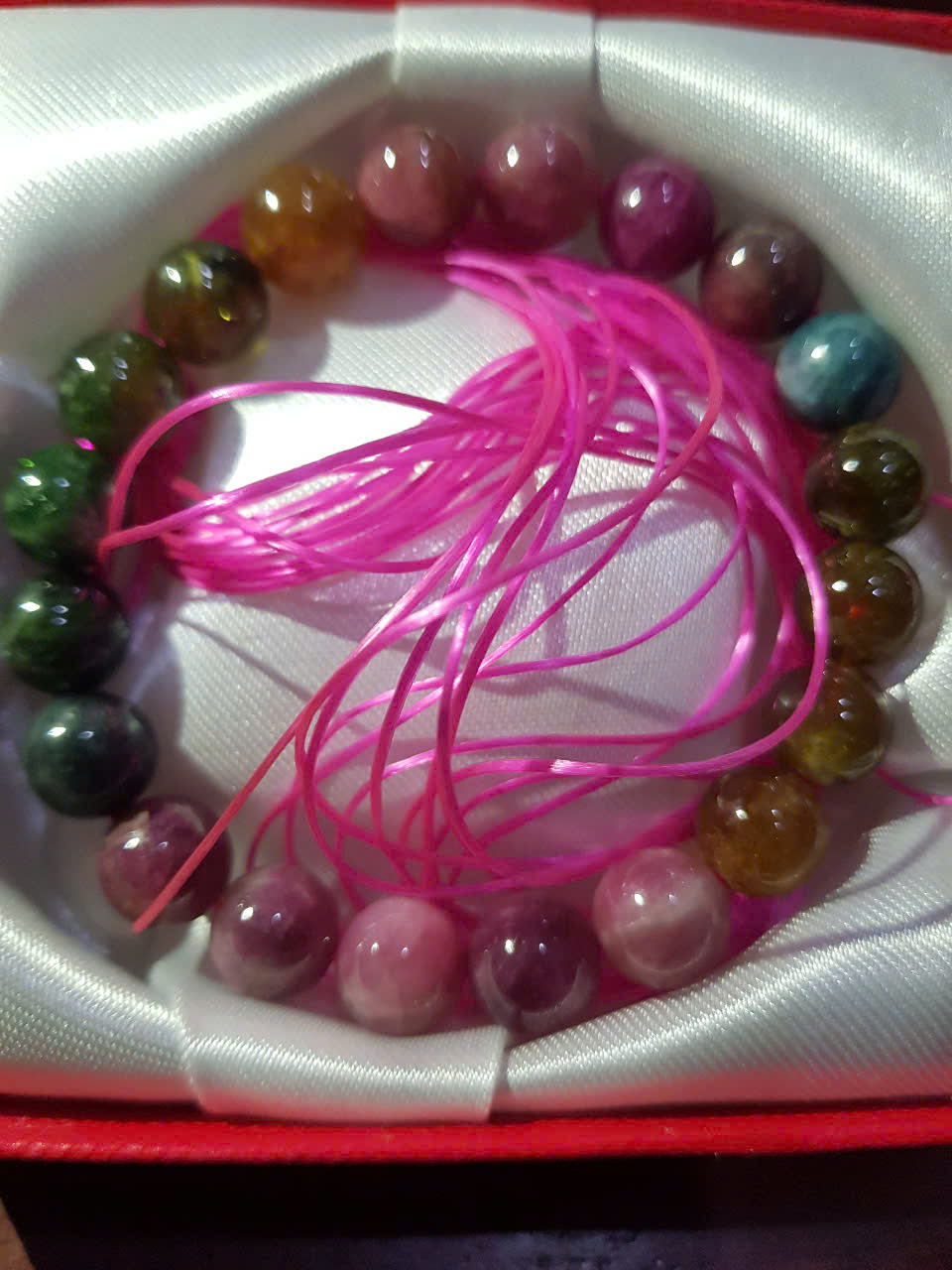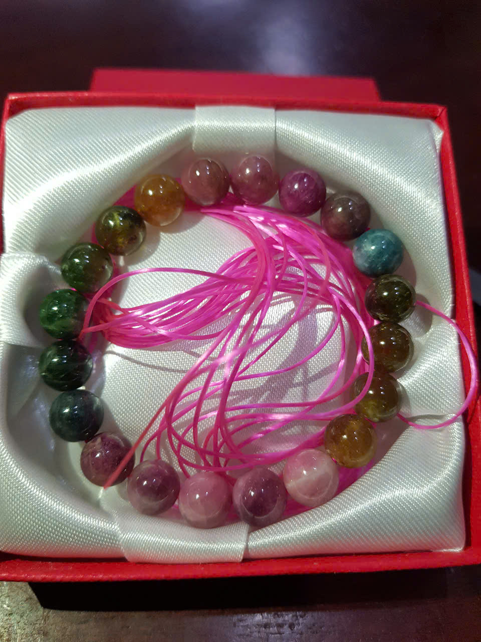 ✨Vòng tay Nữ tourmaline dâu tây tự nhiên đa sắc màu tươi đẹp thiệt sang size hạt 9,5mm vòng này hợp Nữ tất cả các mệnh đeo nhe ạ