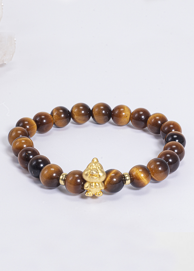 Từ lâu người ta đã biết đá mắt hổ vàng nâu như một viên đá vô cùng tuyệt với tần số rung động cao giúp thu hút những điều tốt đẹp và may mắn trong cuộc sống. Giúp loại bỏ lo âu, căng thẳng, giúp tinh thần luôn tỉnh táo, lạc quan. Vòng Tay Phong Thủy Đá Mắt Hổ Vàng Nâu Phối Charm Tuổi Dậu Bạc Mạ Vàng 24K (8mm) Mệnh Thổ, Kim được làm từ đá mắt hổ vàng nâu.