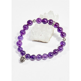 ✨Vòng tay phong thủy nữ đá thạch anh tím charm trái thông 8mm mệnh hỏa , thổ - Ngọc Quý Gemstones