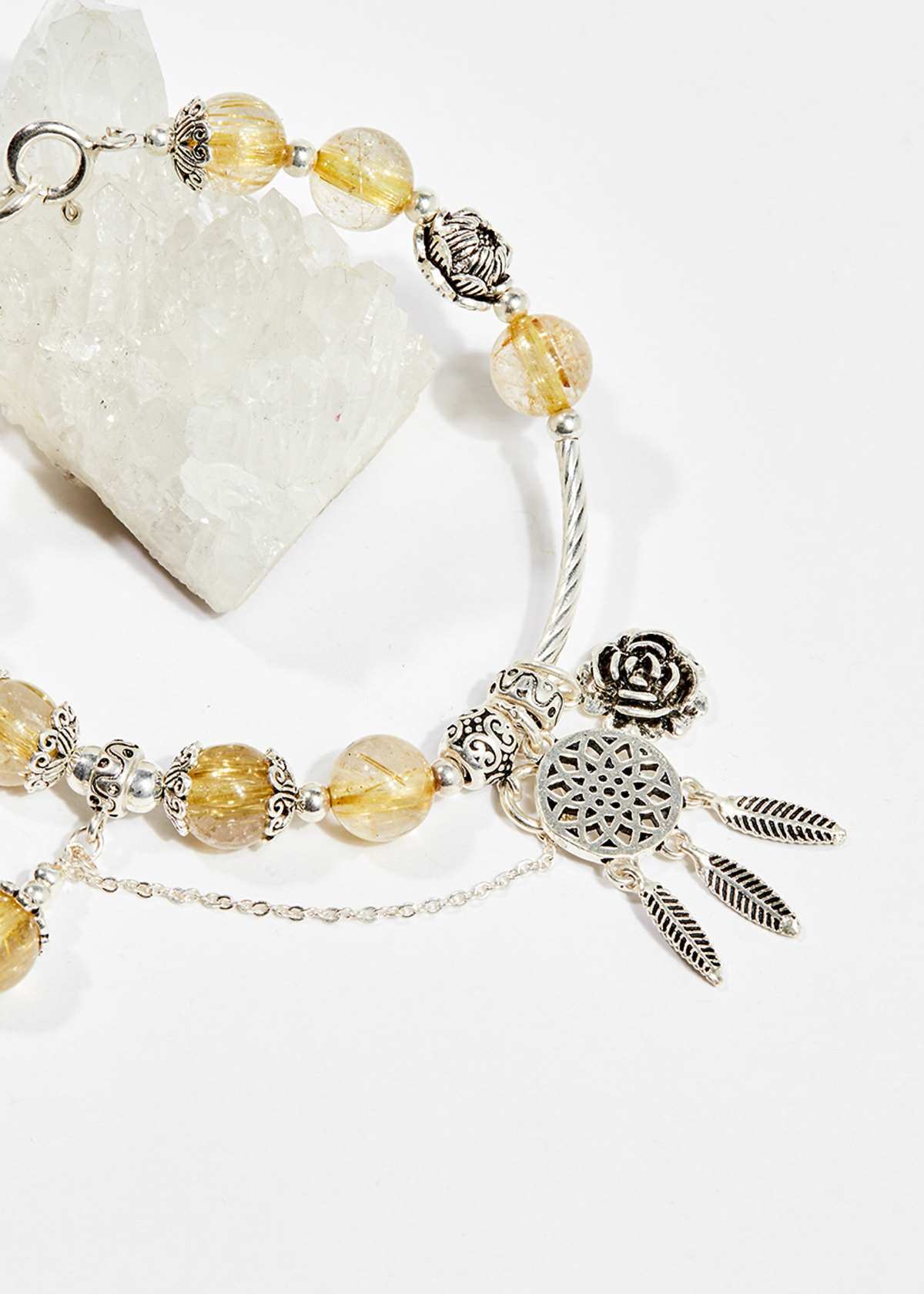 VÒNG TAY ĐÁ THẠCH ANH DÂU PHỐI CHARM DREAMCATCHER: Thạch Anh Dâu hay "Mũi tên của thần Tinh Yêu" đã không ít lần khiến mỗi ai khi chiêm ngưỡng phải ngạc nhiên trước vẻ đẹp