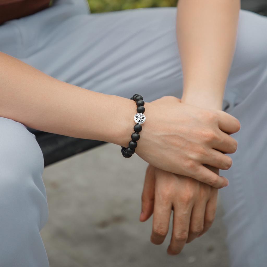 ✨Vòng Tay Trầm Hương Charm Bạc 925 Bánh Xe Pháp Luân Phong Thủy Udumbara