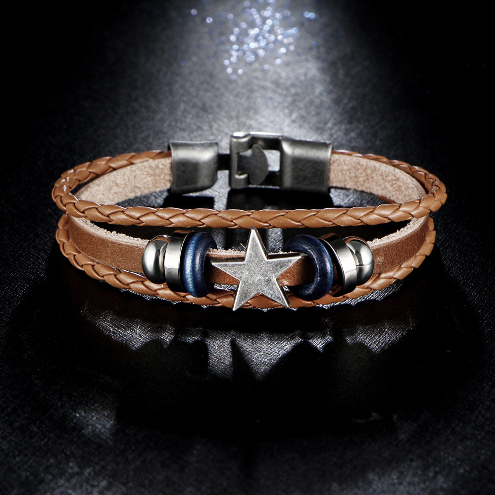 ✨Vòng Tay - Vòng Đeo Tay Ngôi Sao, Da Bò thật, kích thước 20cm, handmade, Phong cách Euro Vintage.