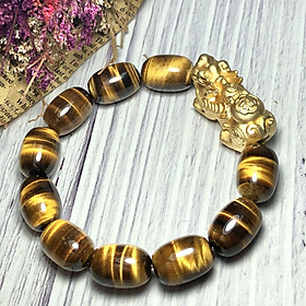- Chuẩn đá: 5A - Kiểu dáng: vòng hạt trụ - Chất liệu: đá Mắt Hổ tự nhiên kết hợp tỳ hưu bạc mạ vàng - Màu sắc: màu vàng nâu tự nhiên - Tiêu chuẩn chất lượng: hàng tự nhiên không xử lý - Phong cách: cá tính, tín ngưỡng - Sử dụng: công sở, đi chơi, quà tặ