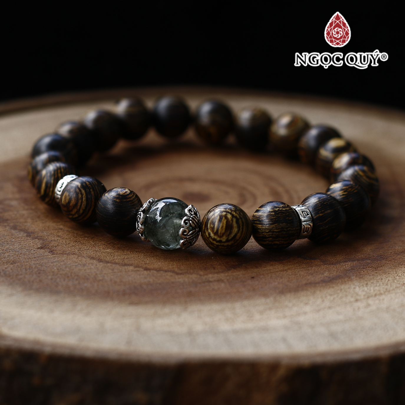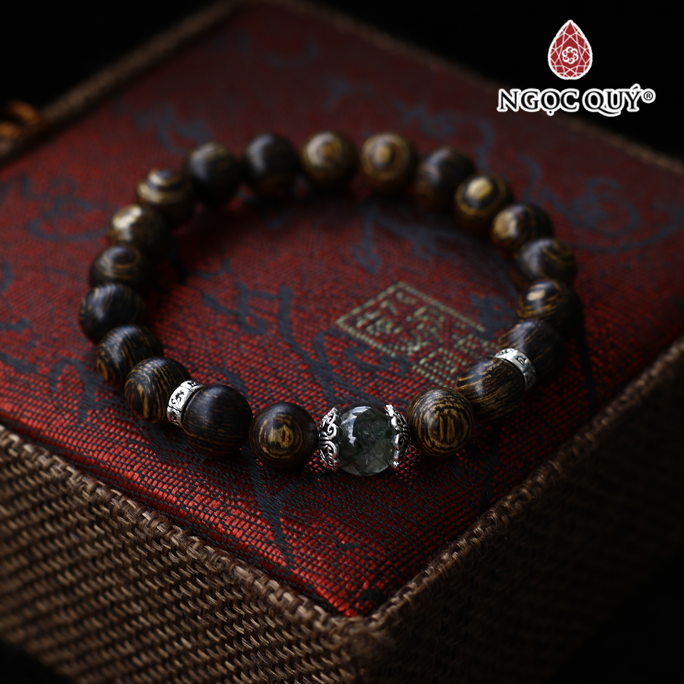 ✨Vòng trầm sánh tròn 8mm phối đá thạch anh tóc xanh - Ngọc Quý Gemstones