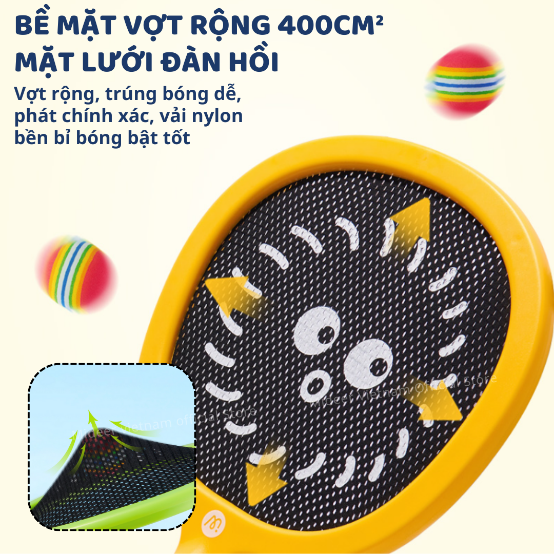 - THIẾT KẾ PHÙ HỢP VỚI TRẺ EM Vợt được thiết kế đặc biệt cho trẻ mới bắt đầu để kích thích khả năng thể thao của trẻ. Chất liệu vải mềm mại và trọng lượng nhẹ giúp trẻ dễ dàng kiểm soát và điều khiển vợt, từ đó đem lại cảm giác thành tựu và niềm yêu thích thể thao cho con.