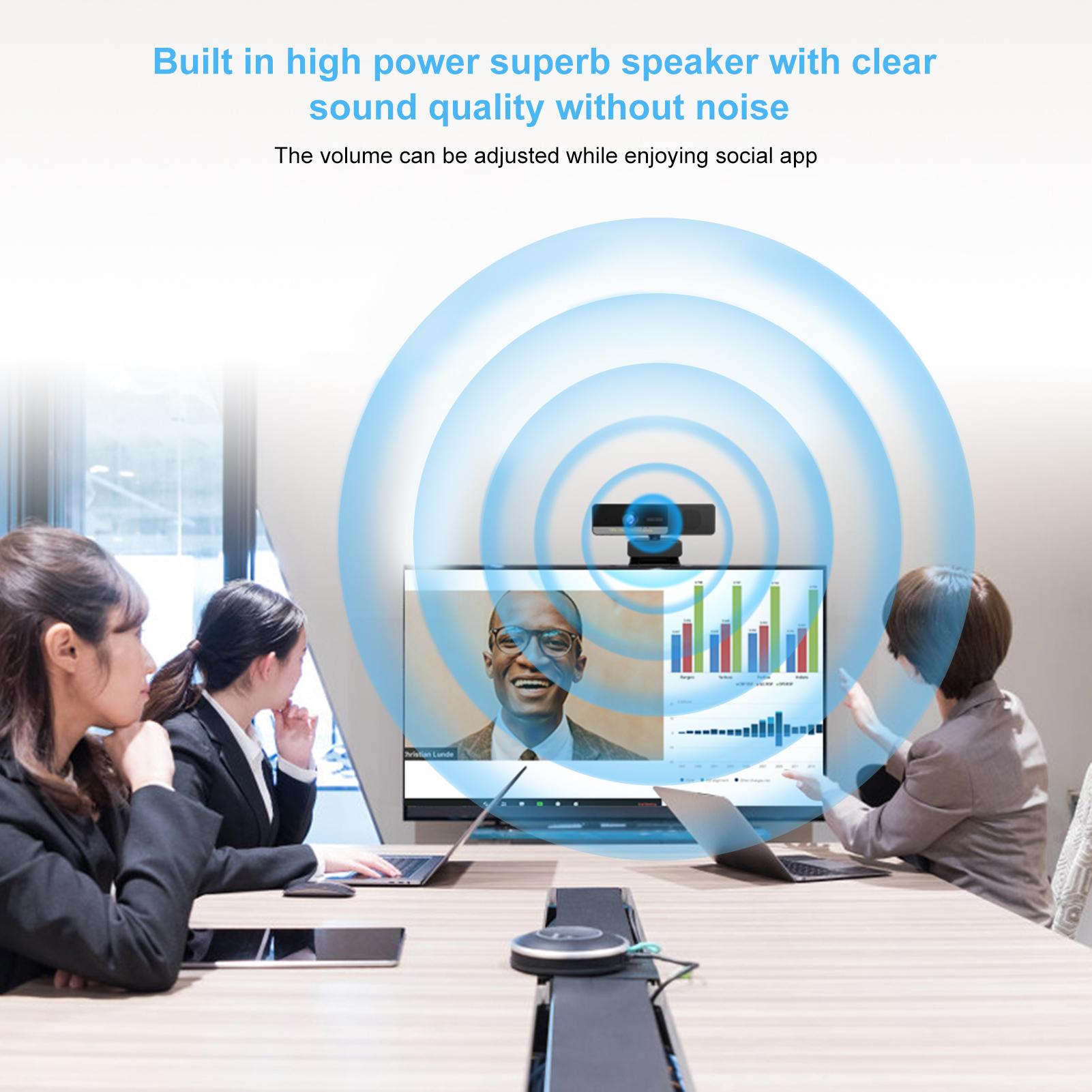 Features: Built-in independent channels of digital microphones, you canclearly hear the sound within 10 meters. Can be placed on the desktop, can be clamped on the display. 1080P high-definition camera, 2 million pixels and true
